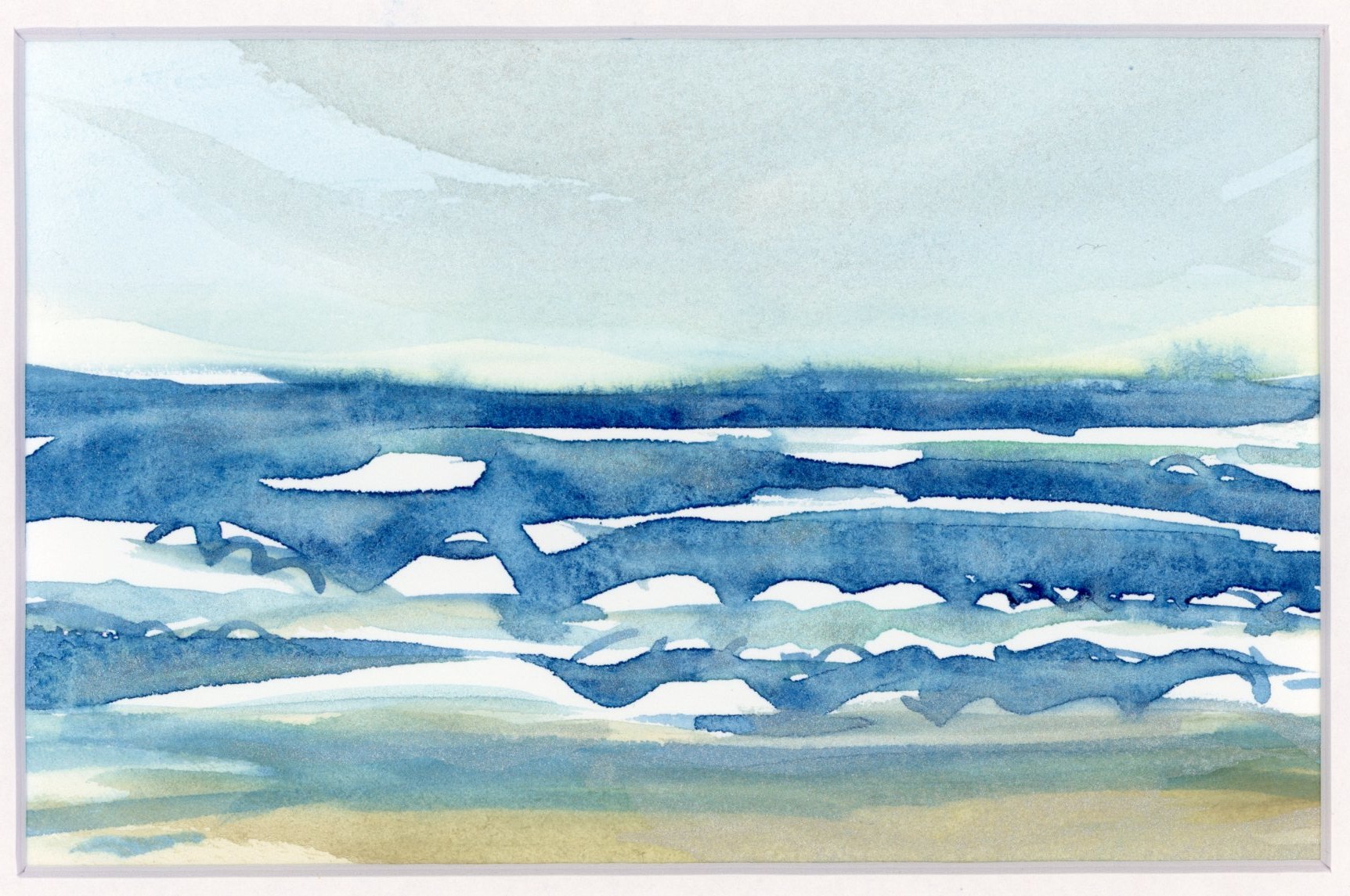 Coastal-inspired blue and white watercolor; silver gallery frame, matted under glass. Great for beach and nautical lovers!