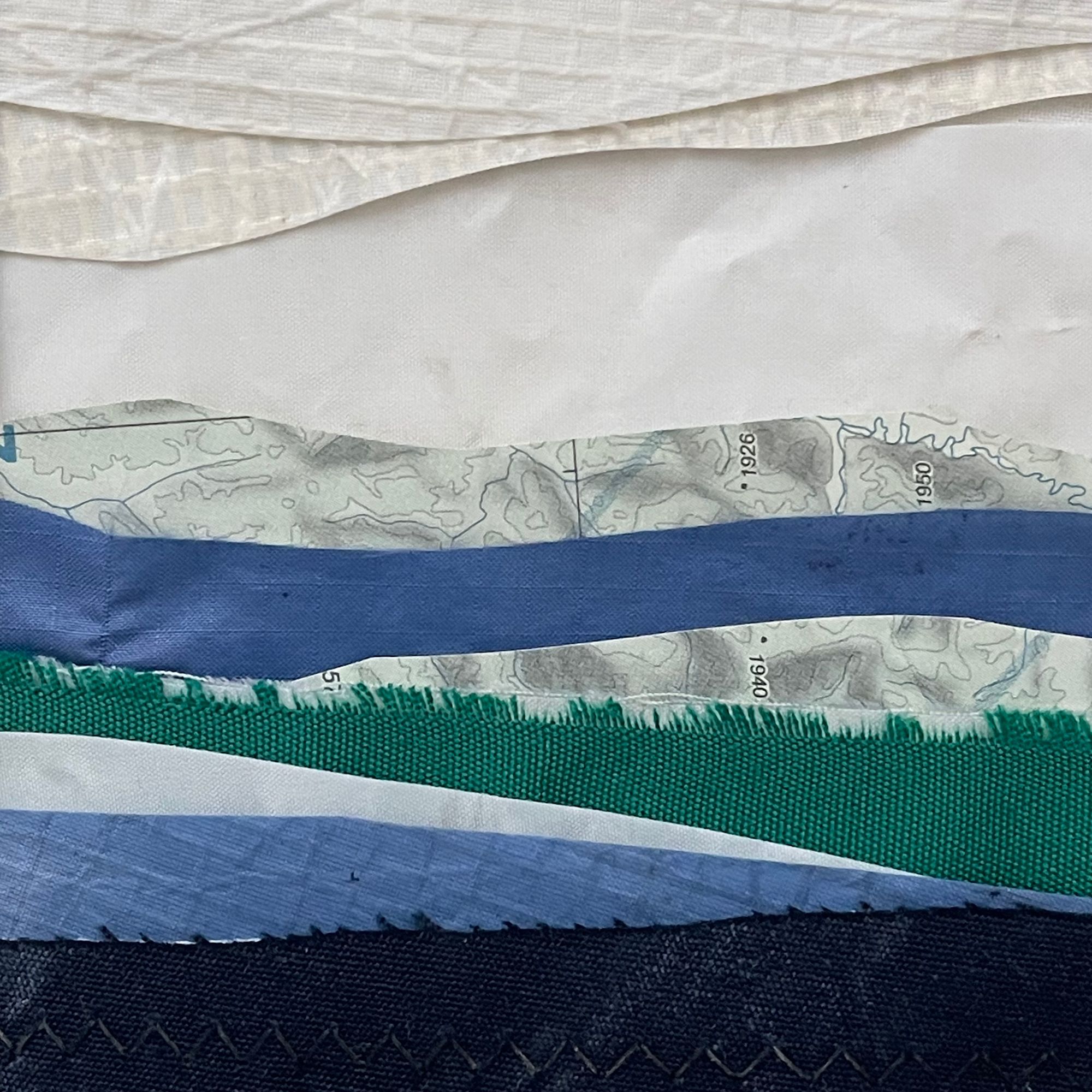 Reclaimed-Repurposed-Reimagined Nautical Sails, and Marine Cloth with a vintage aviation chart - mixed media art