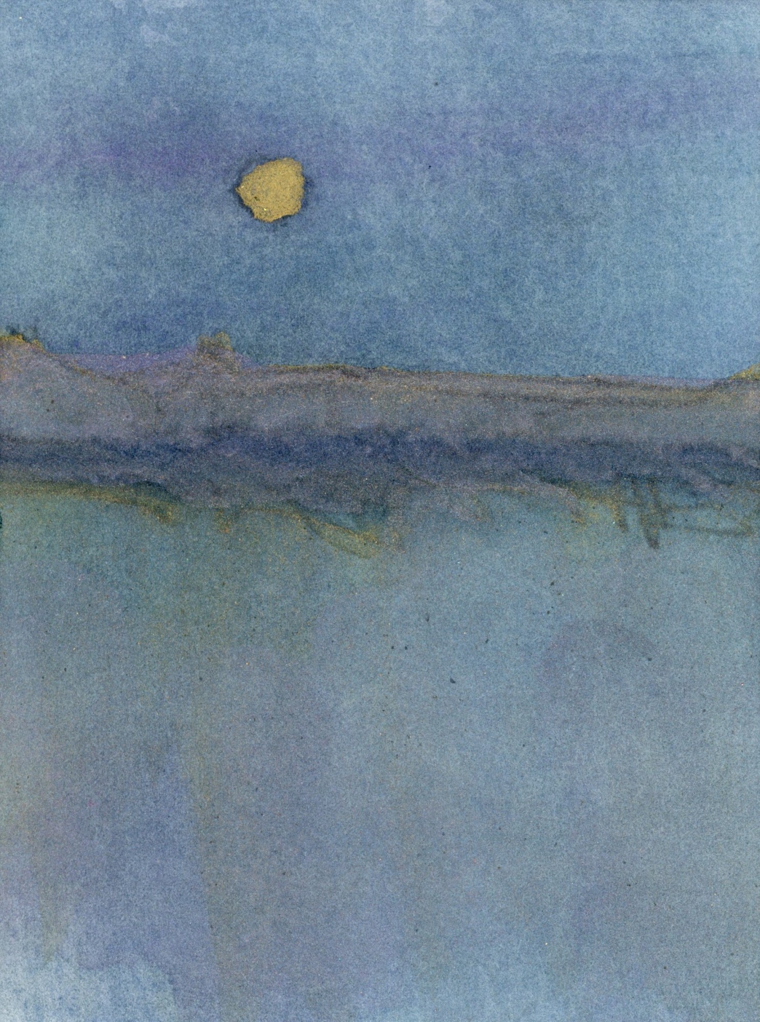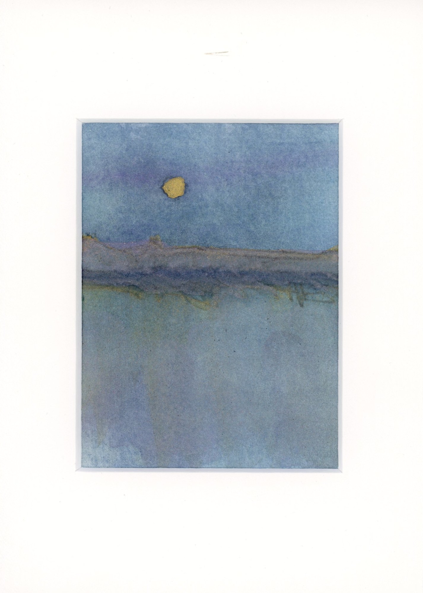 The moon over the horizon creates a feeling of connection to something greater than ourselves. This landscape watercolor is professionally finished with a classic bevel-cut gold frame. A custom palette on 100% cotton paper makes this a one-of-a-kind piece of art.