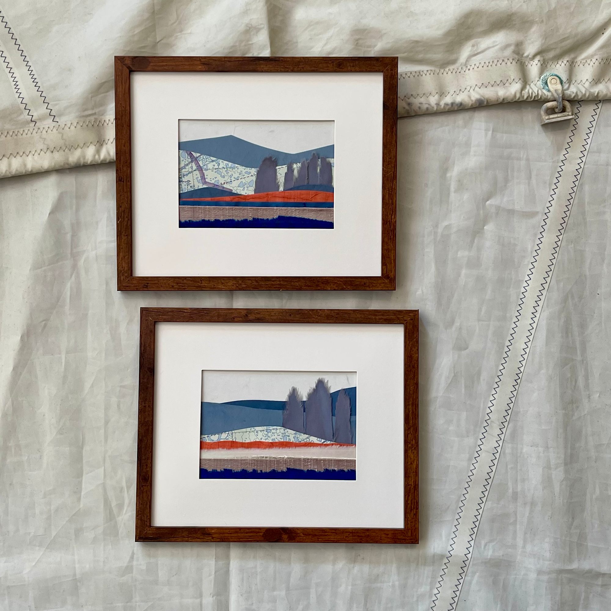 Repurposed "retired" nautical sail, aviation chart and dupioni silk mixed media art.
