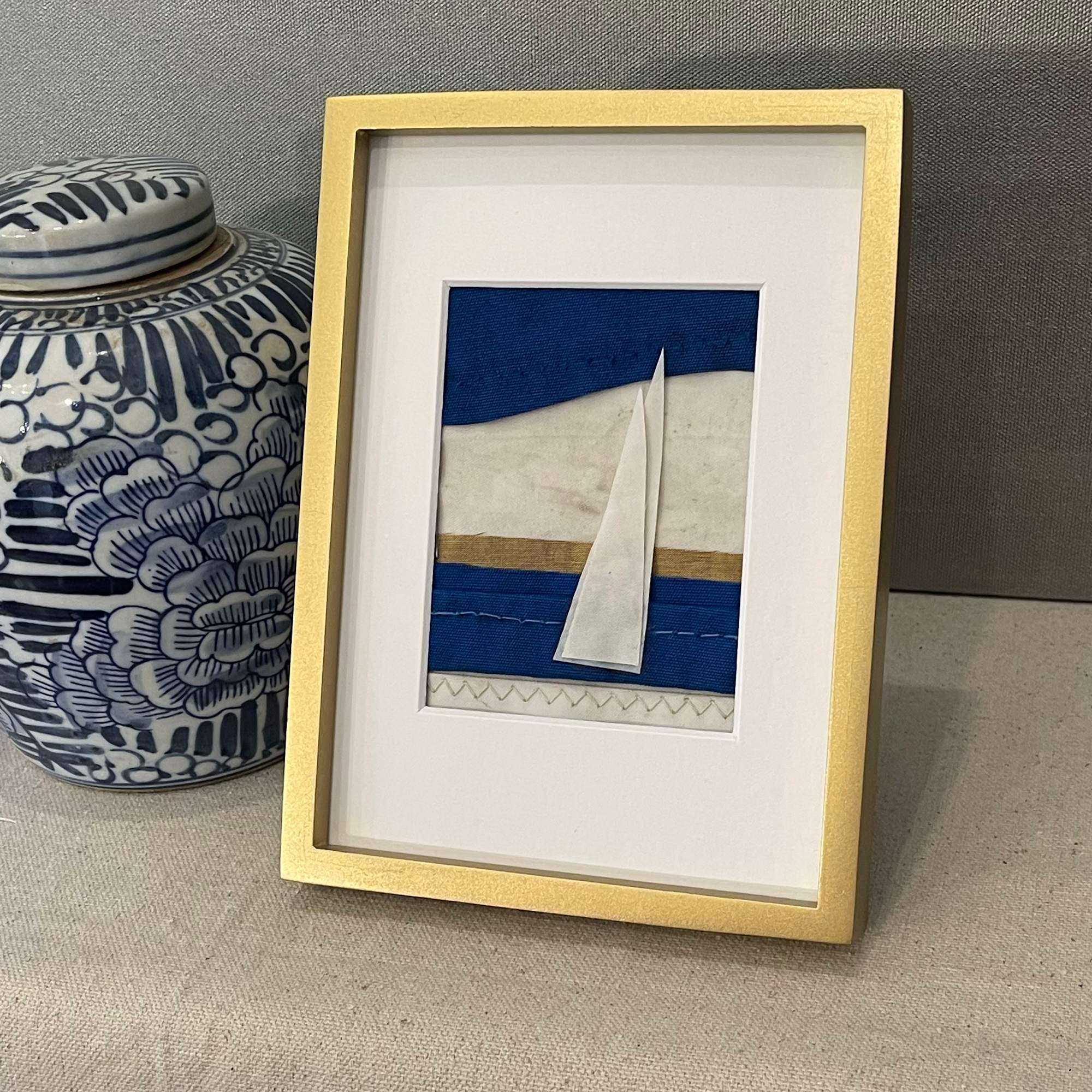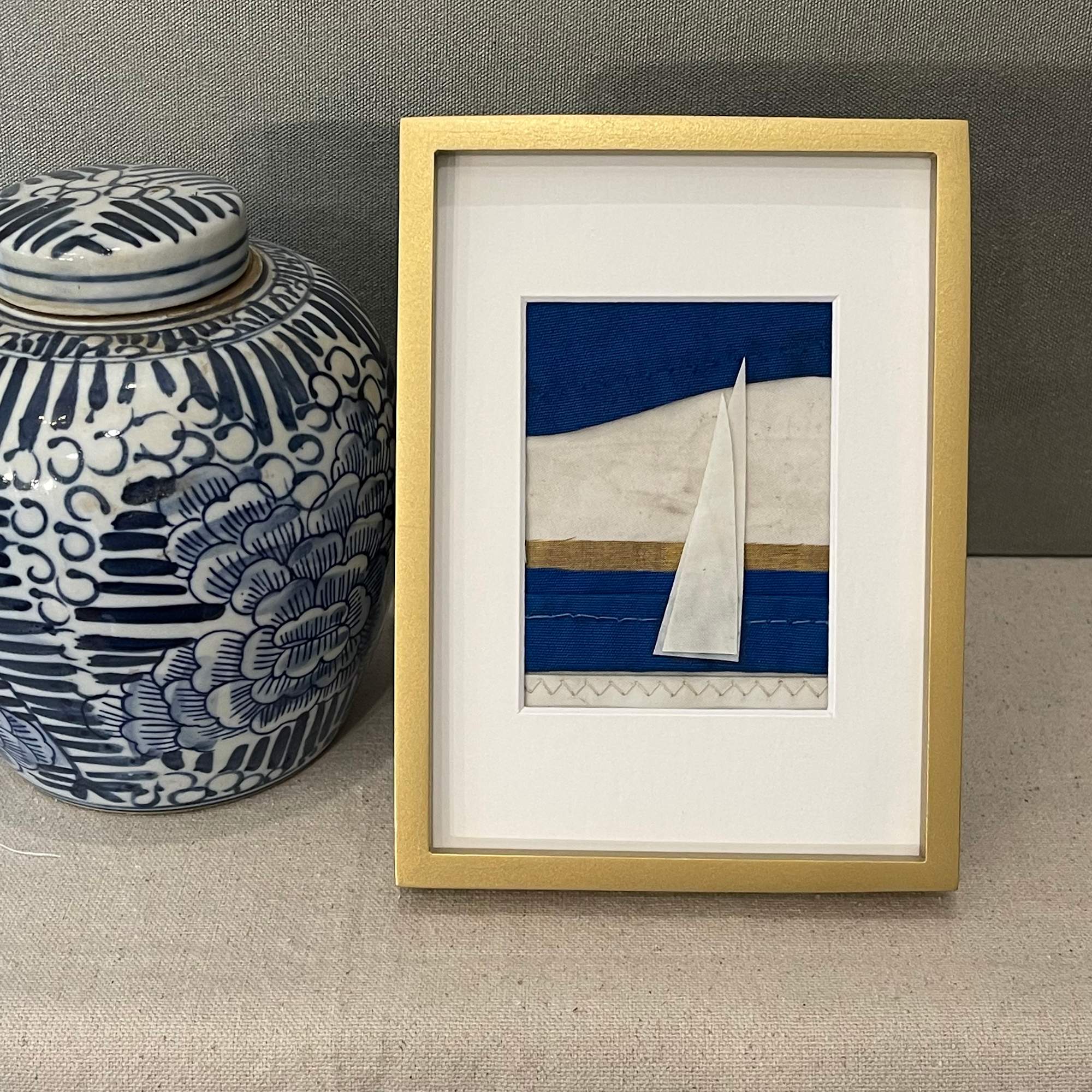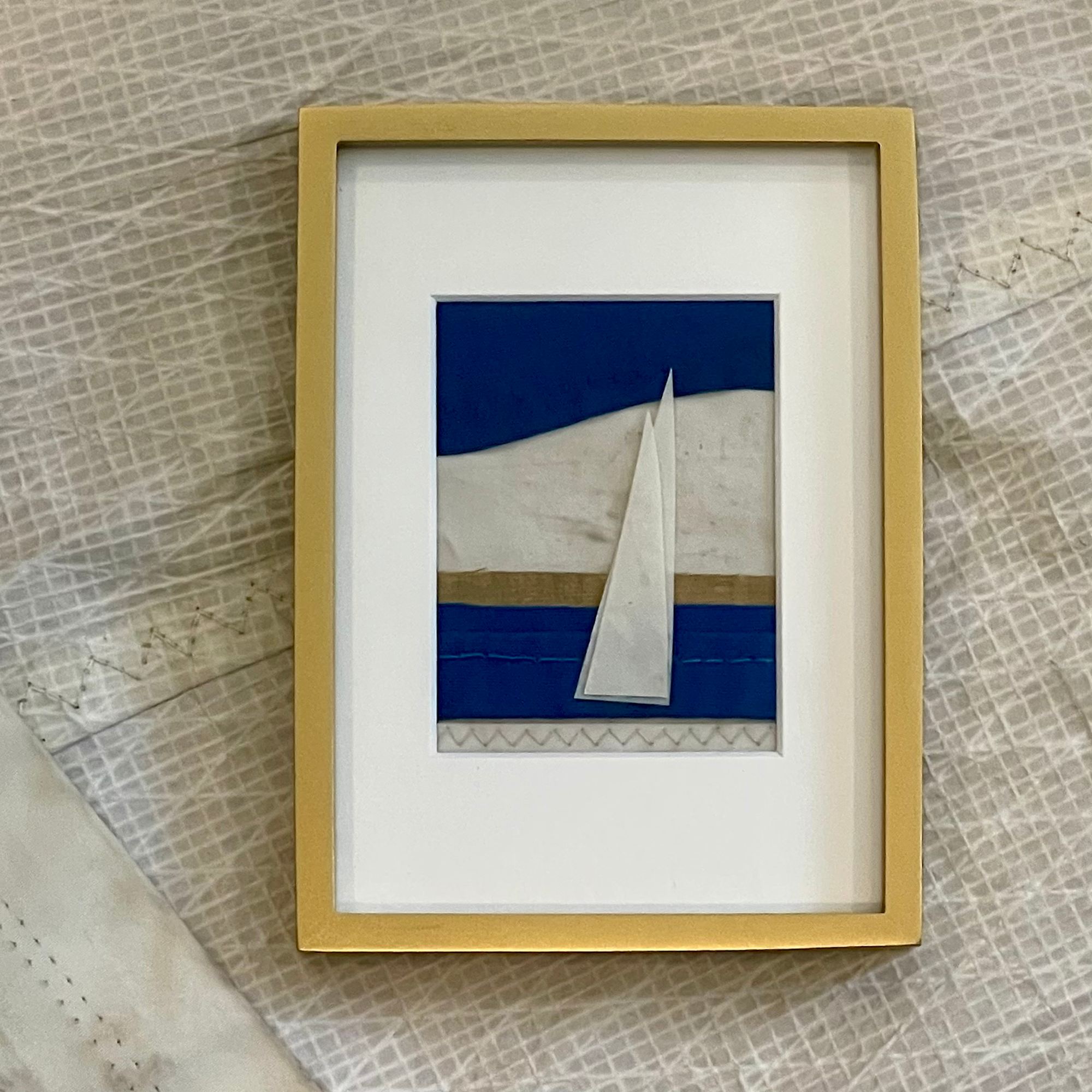"Retired" nautical sail with vintage dupioni silk - mixed media art