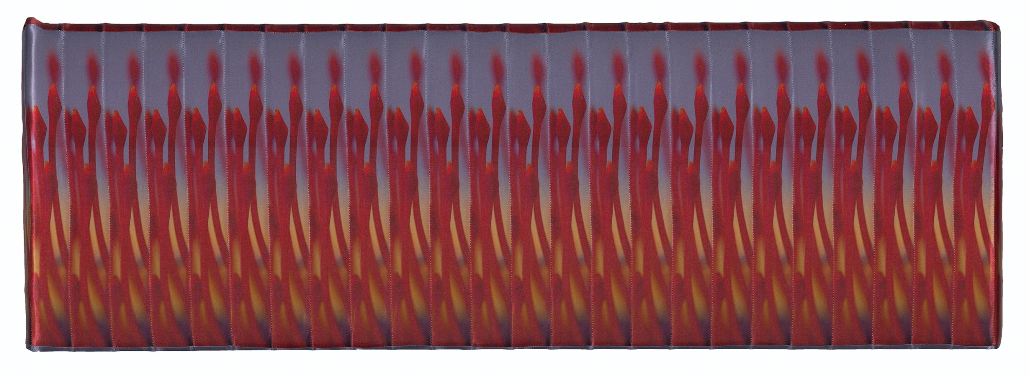 • Multiple dye sublimation prints on satin, sewn together, and wrapped around a foam-covered panel