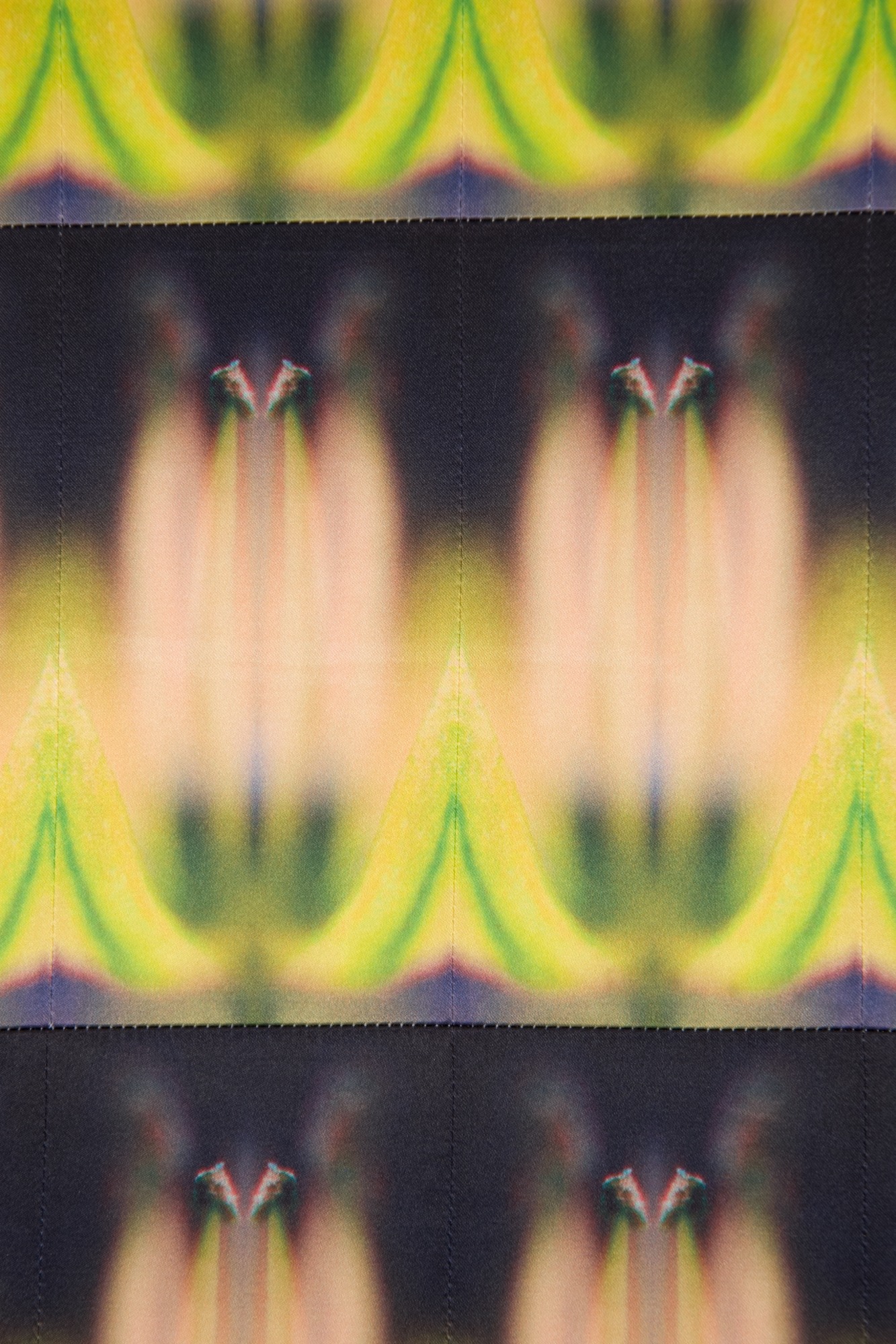 • Multiple dye sublimation prints on satin, sewn together, and wrapped around a foam-covered panel