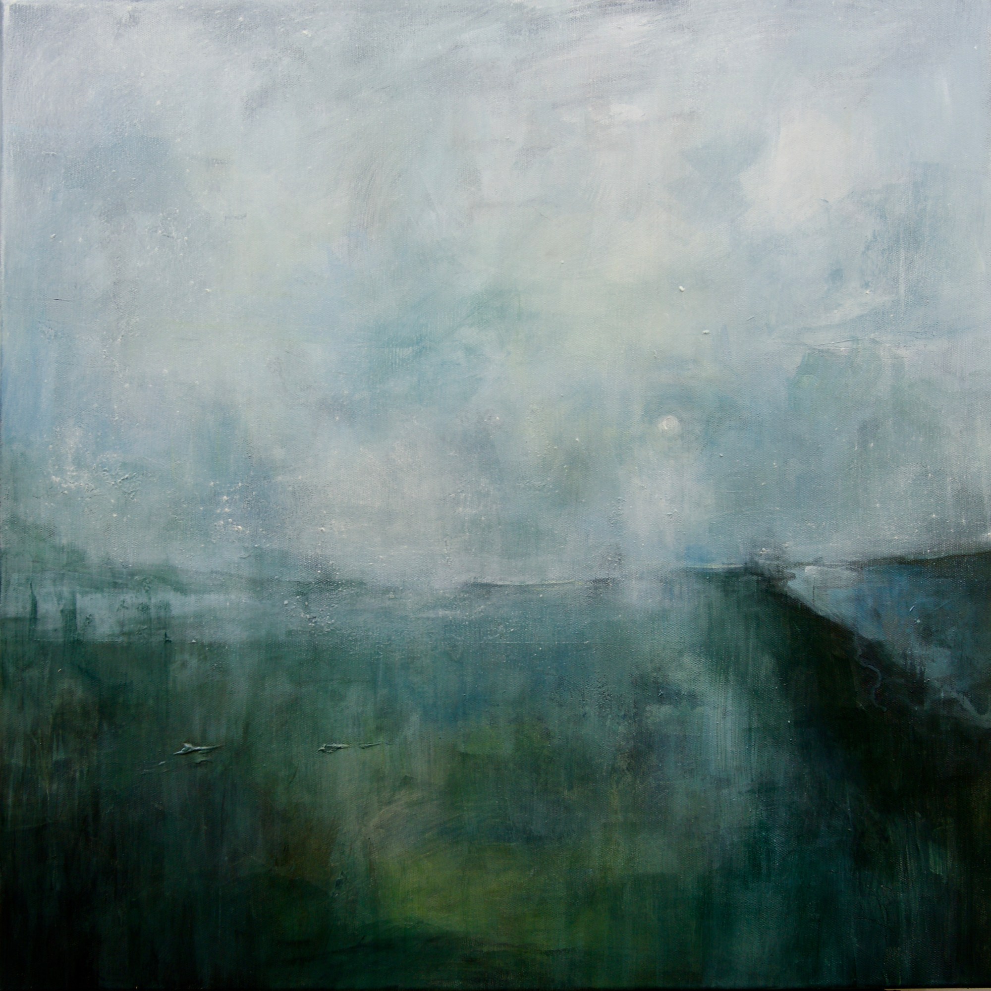Painted in many layers of acrylic, with oil and cold wax on canvas.