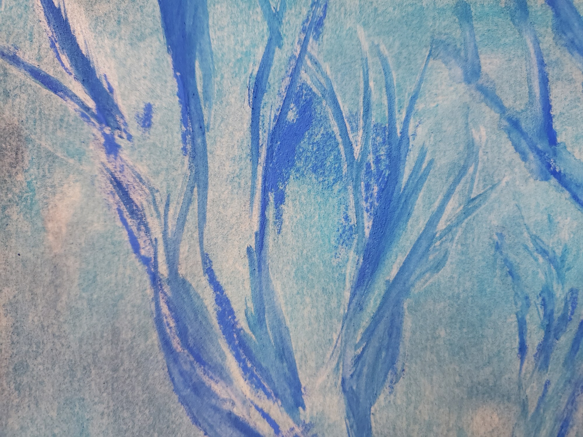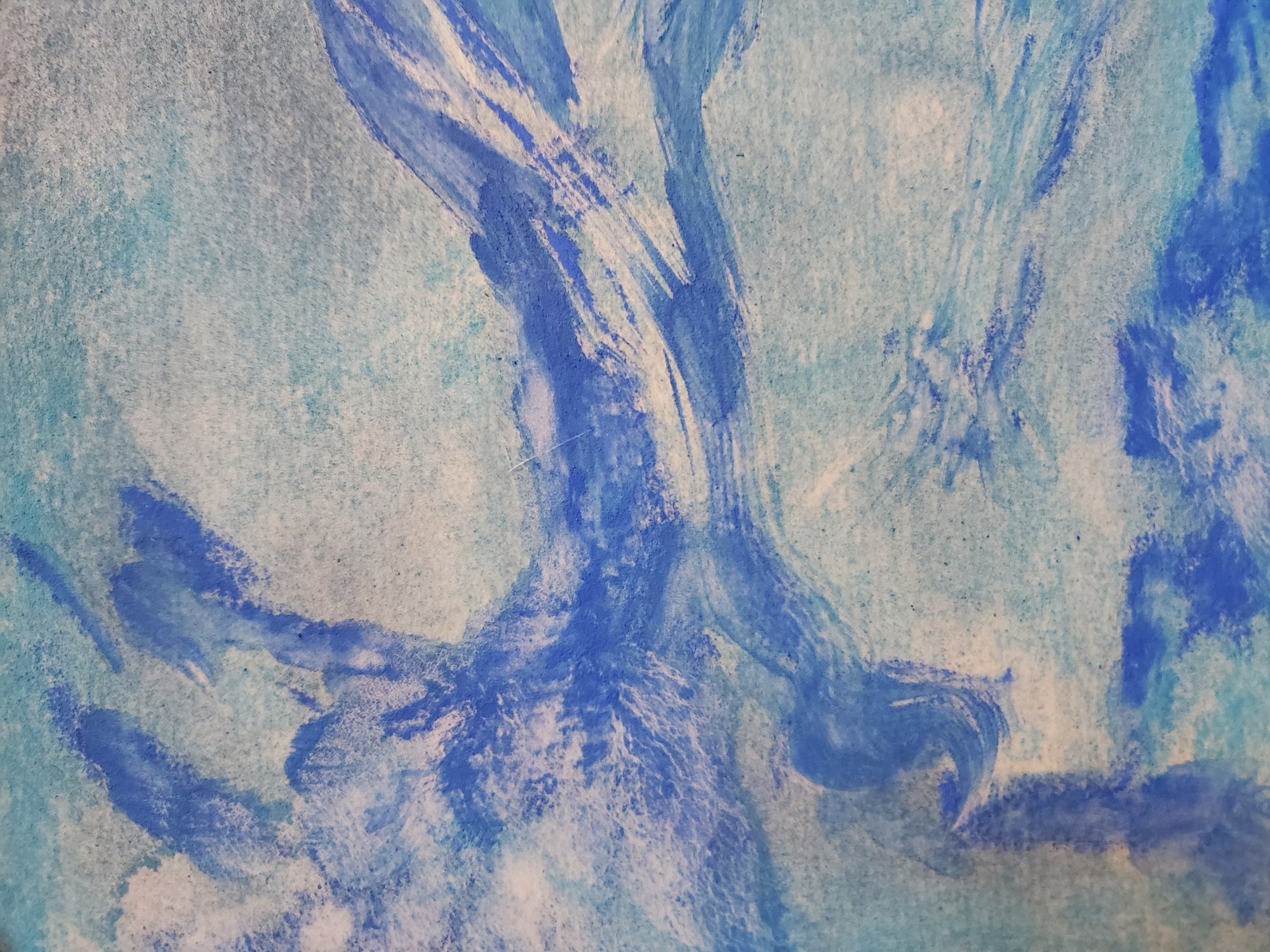 Day 28 of #abstractartfor40dayschallenge in 2021, pastel with alcohol wash on 400 grit Uart paper 9"x12", unframed. Titled "Blue Trees " I liked the simplicity of the trees on the blue ground. The alcohol wash gives the trees a sense of movement almost like they are doing a dance.