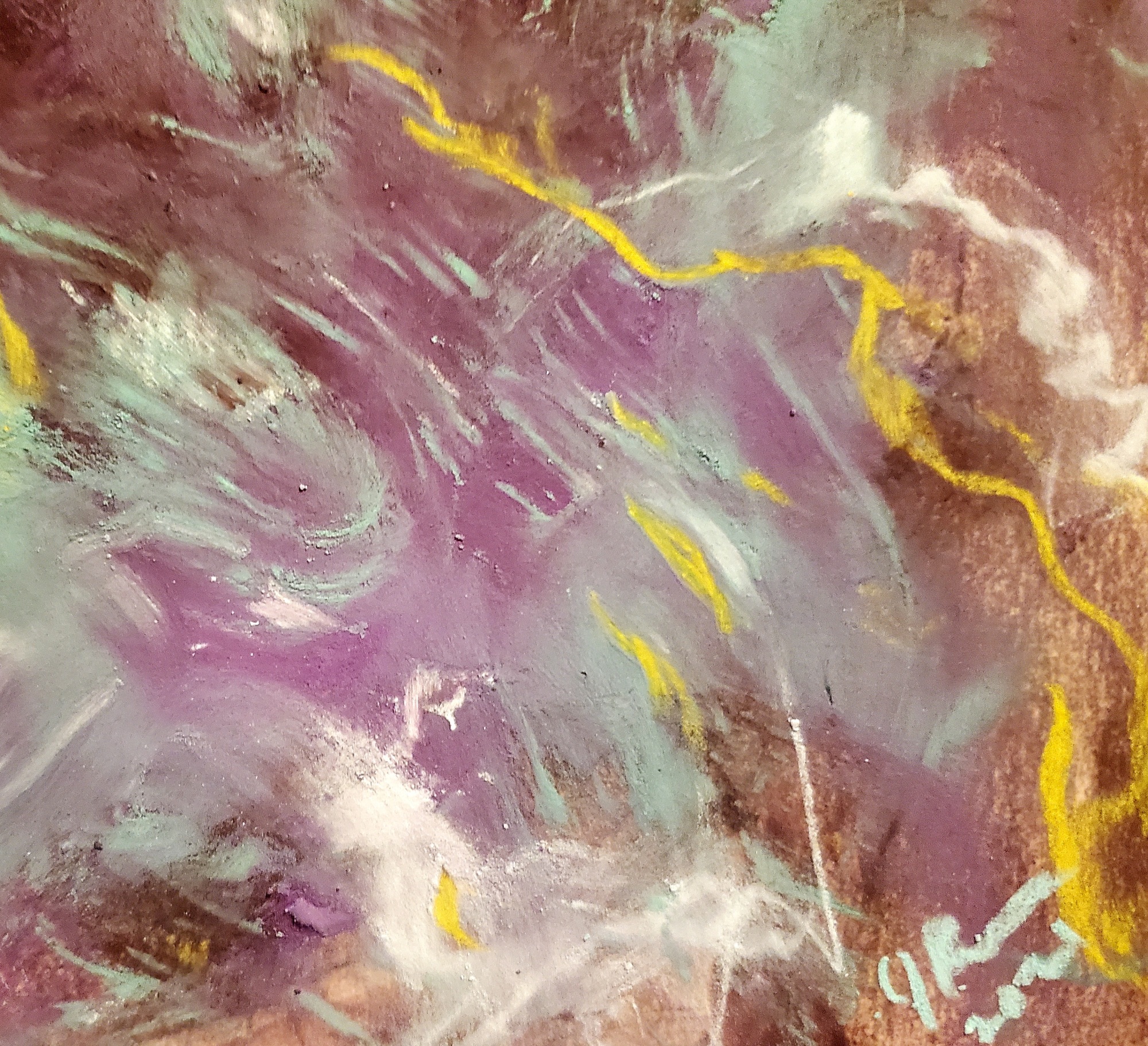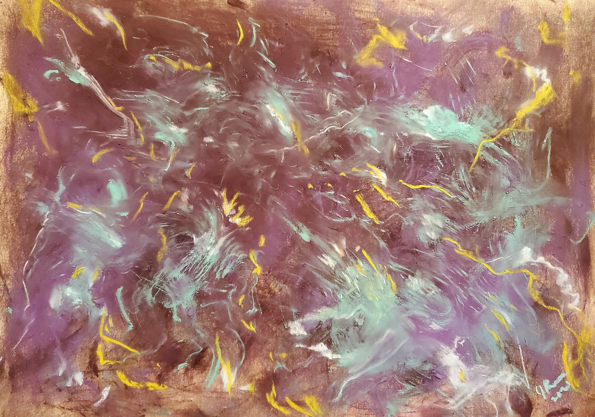 Day 39 of #abstractartfor40dayschallenge titled "Blue Wisps", a pastel on 600 grit #Uart paper 9"H x 12"W, using crushed pastel bits, no alcohol this time, just finger schmearing them as I added each color individually.