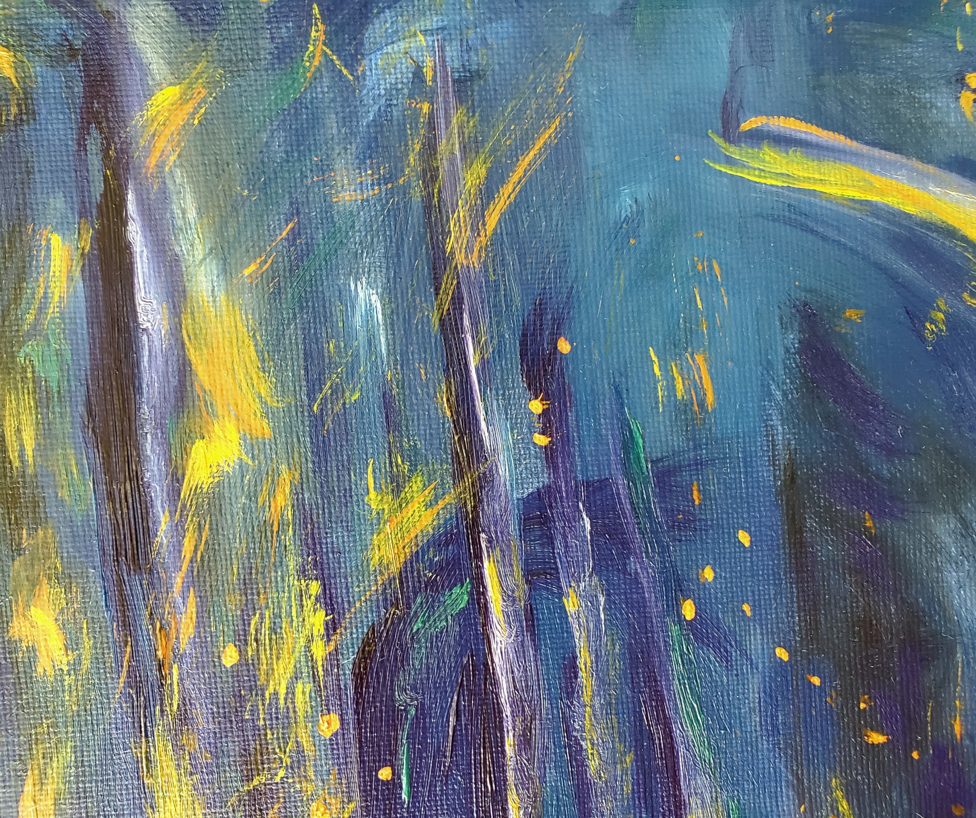 This painting began as an intuitive abstract, my first attempt at an abstract oil painting since college. I had just set up my new studio, and wanted to relax a little.