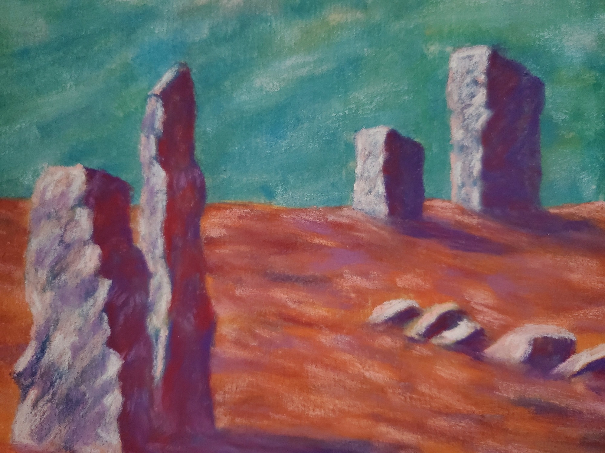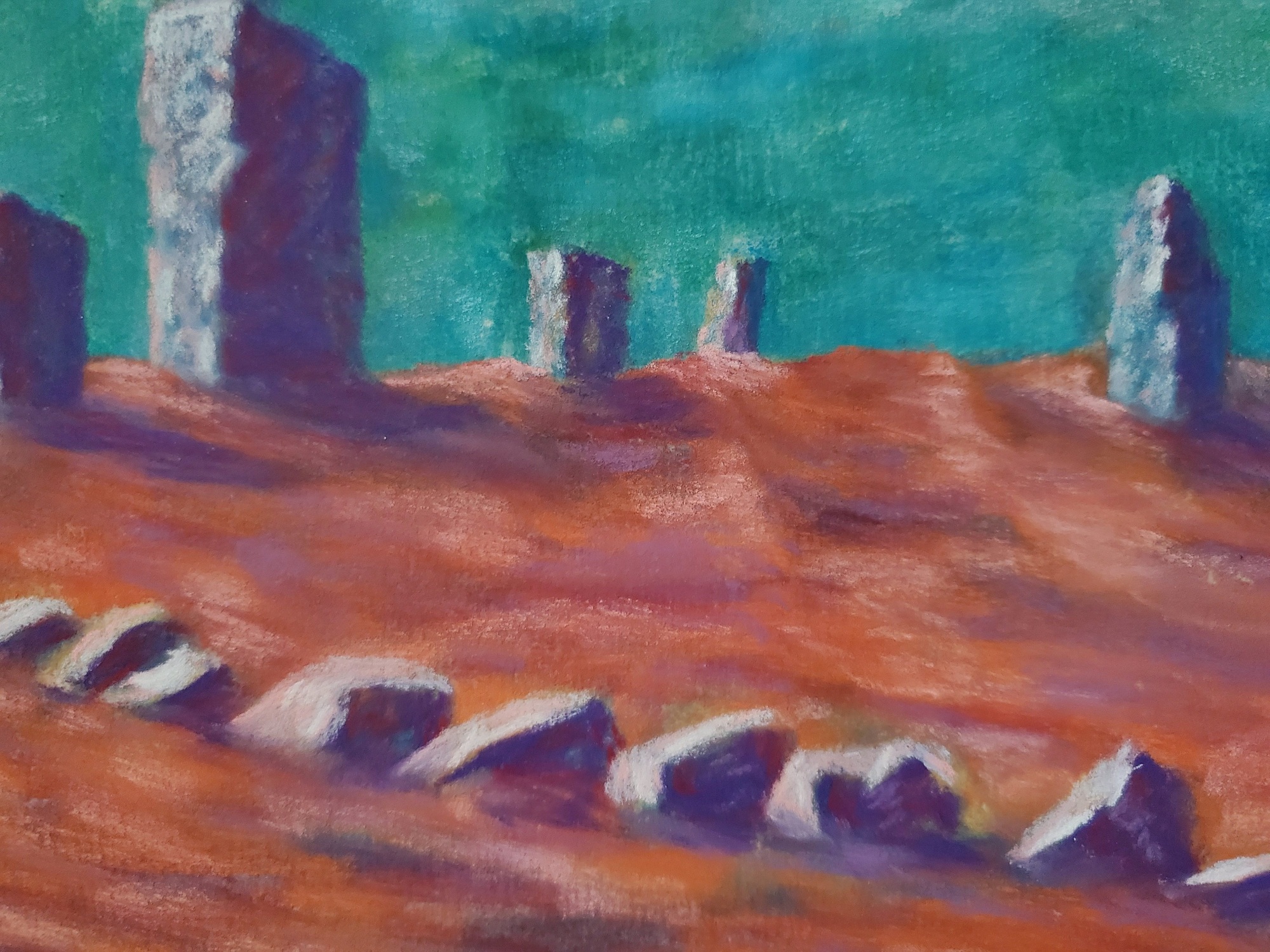Part of my new series of Surrealist/Expressionist images using monolithic motifs from ancient sites to examine mental health issues such as anxiety, depression and PTSD. This one is a pastel on Uart paper. I am currently working on some oils of similar images.