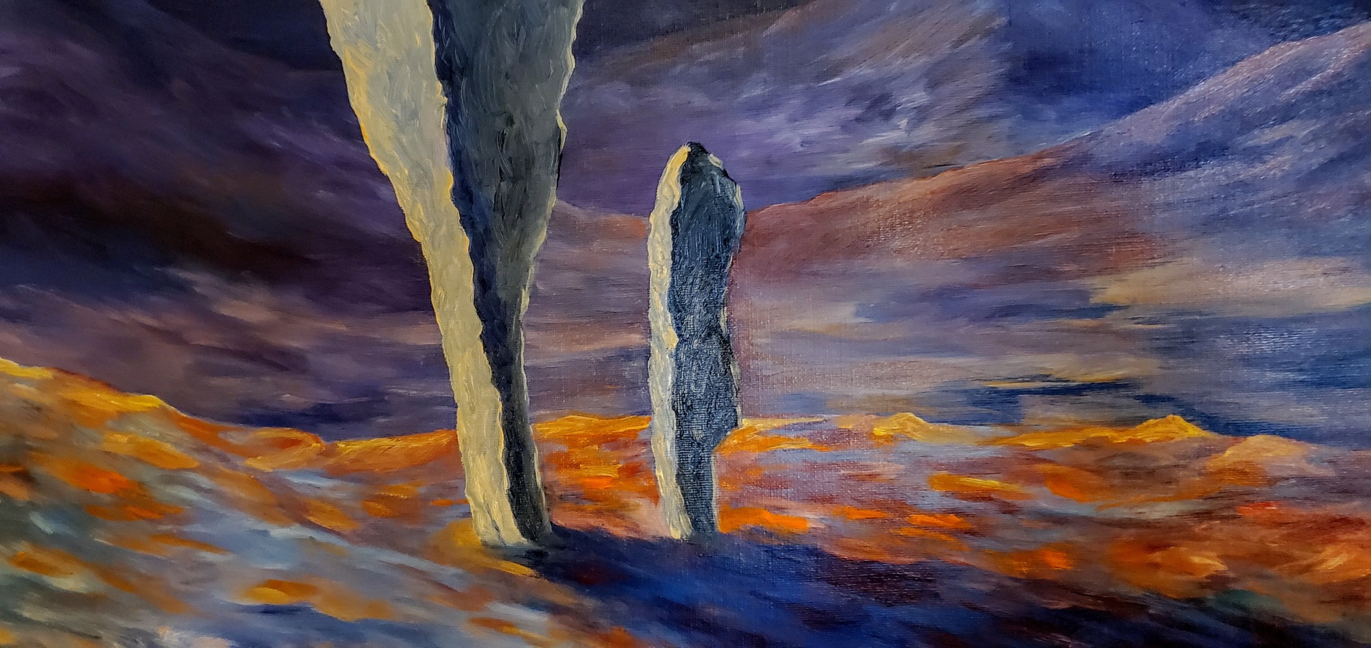Part of my Monoliths series dealing with imagery inspired by Neolithic sites used as metaphors for mental illness symptoms. Here the emotional experiences of single parents and their children are examined from the viewpoint of those involved. It shows just how fragile and overwhelming life can be for these families, who have my deepest respect. My mom was widowed when I was seven years old in the early 1970's when there was no support for single moms, just judgement.