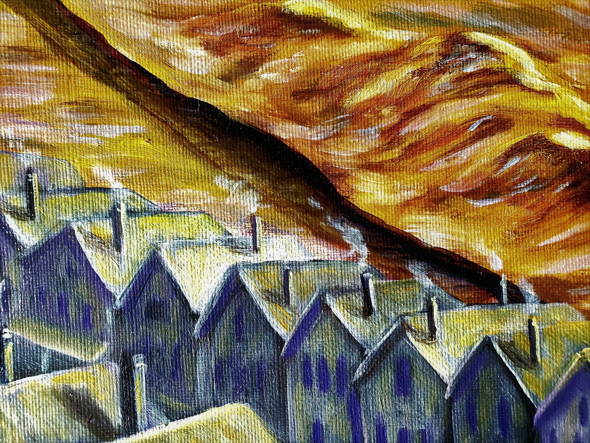 Titled "The Pittsburgh Crucible Steel Co., Midland, PA c.1930s", this oil on linen Expressionist painting is part of my Industrial Art collection. The sheer massiveness of these steel mill complexes is simply staggering. Houses nearby formed the community of mill workers and their families.