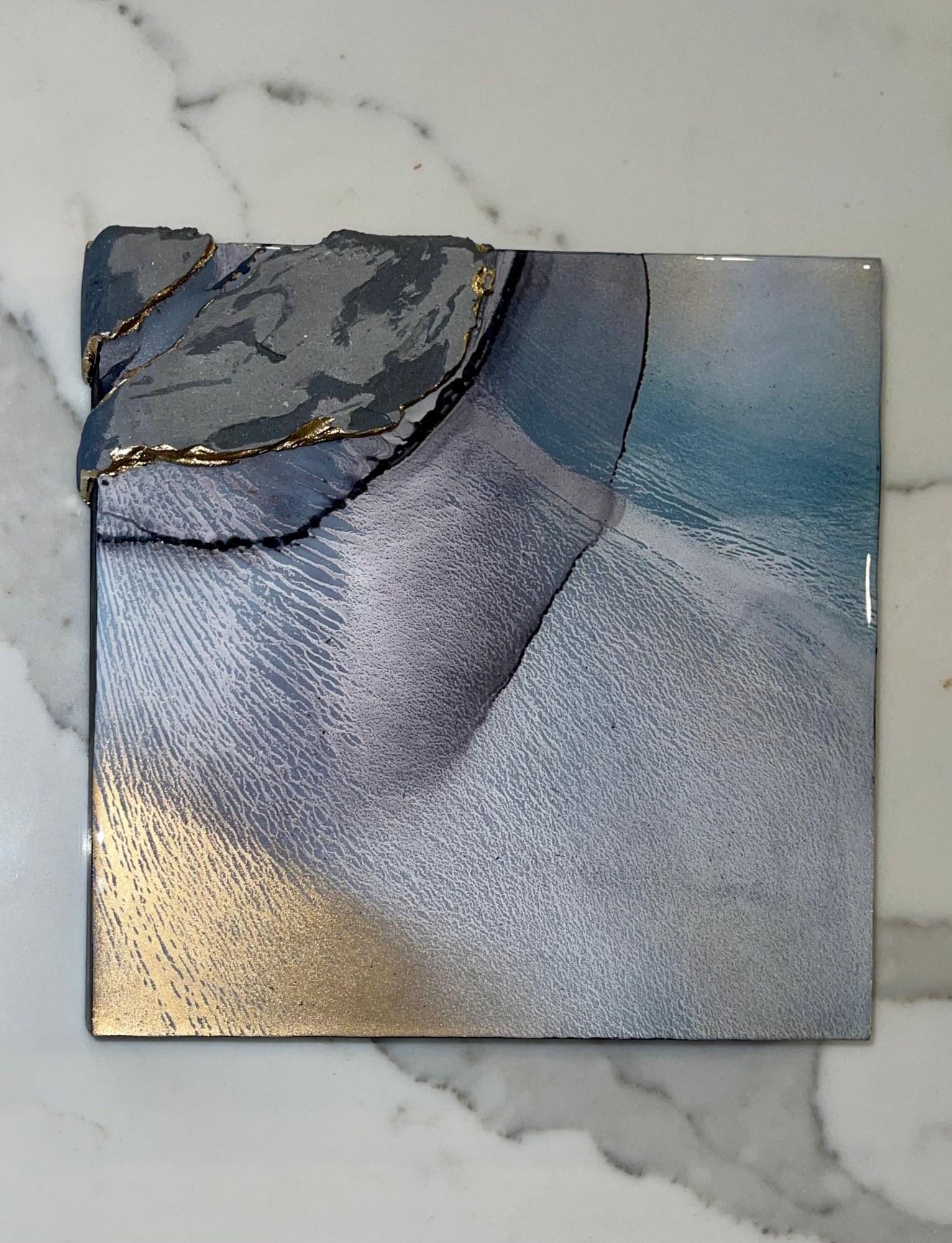 Mixed media on wooden panel