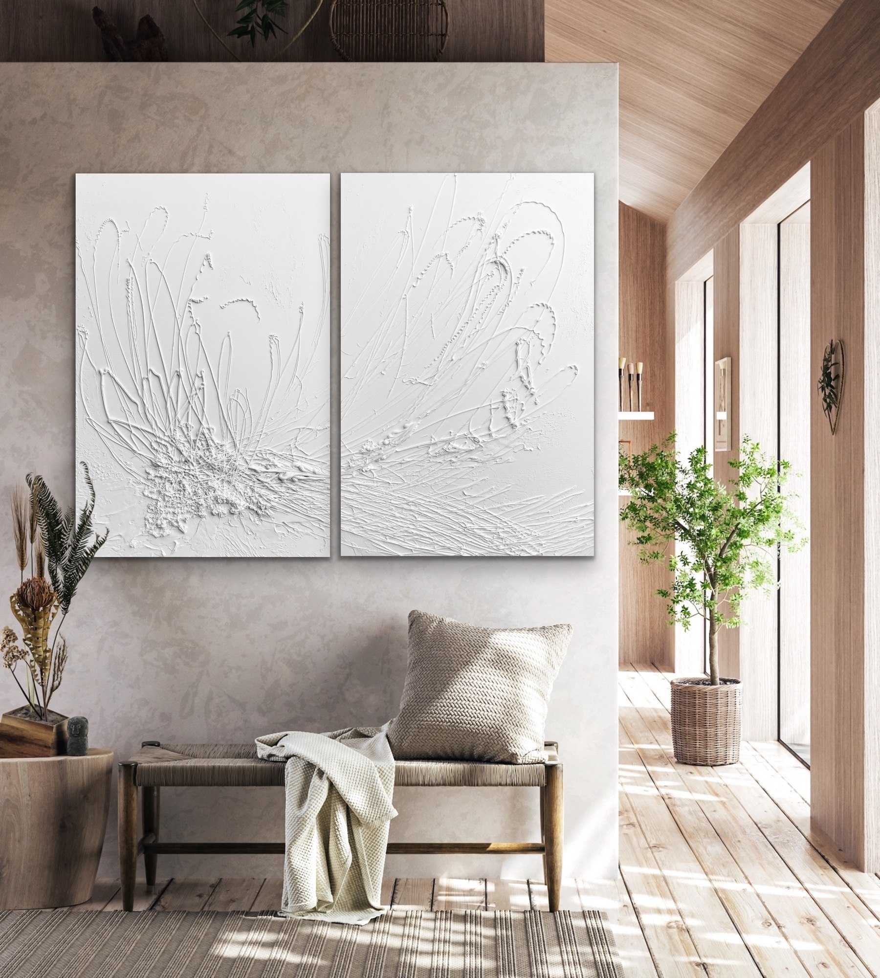 This all white textured artwork would be perfect for a modern home and all the minimal lovers out there. The all white artwork allows the texture to be the hero of the piece.