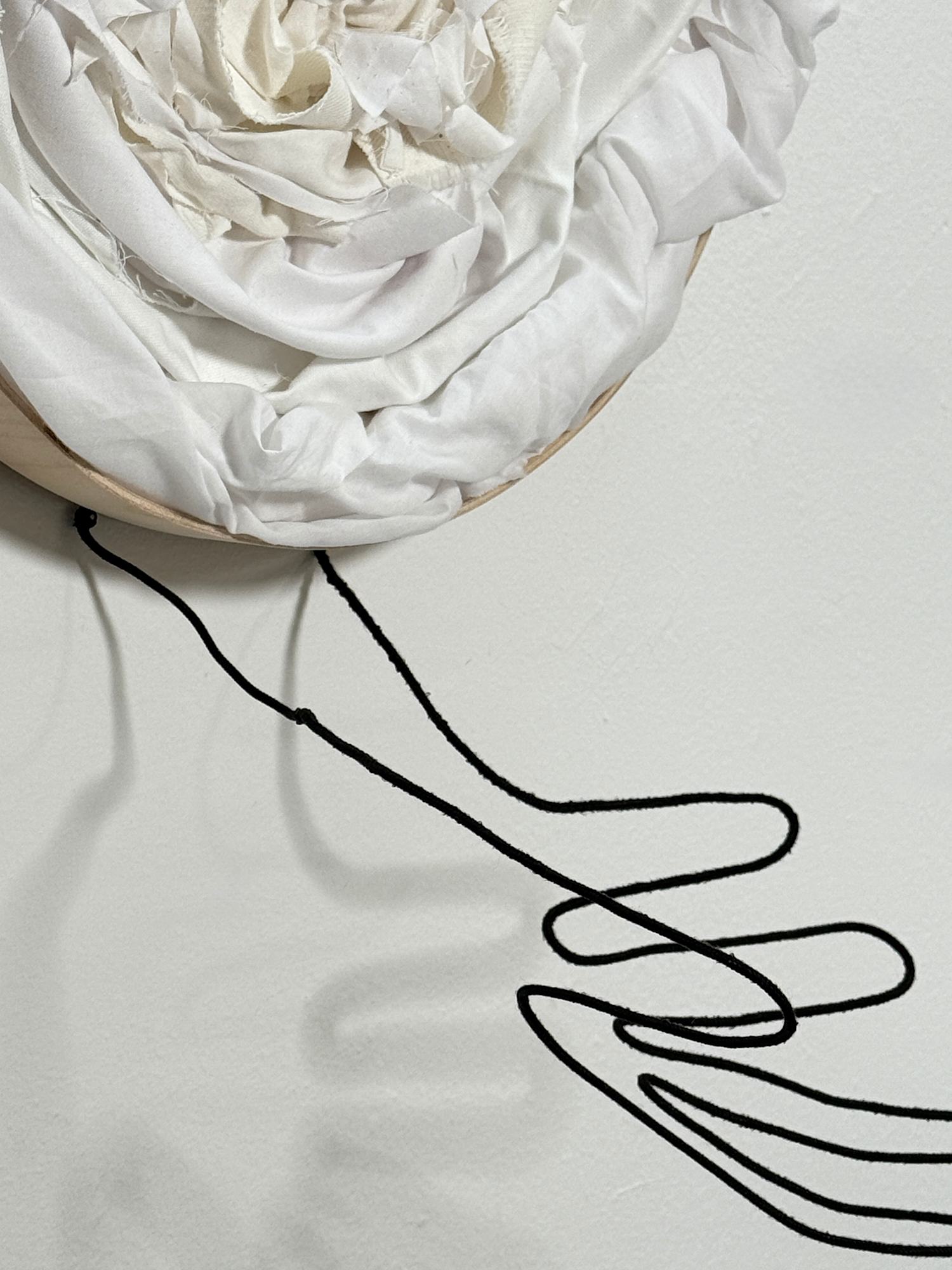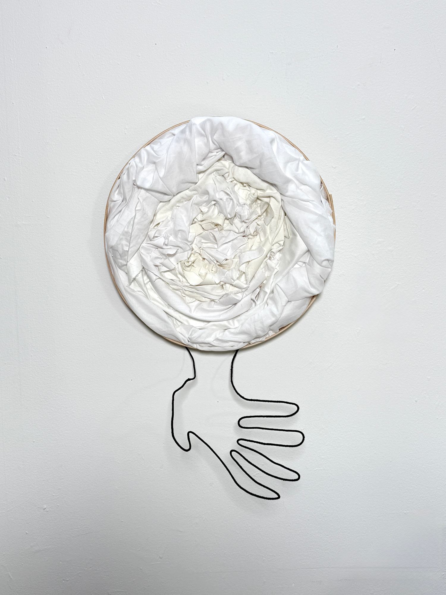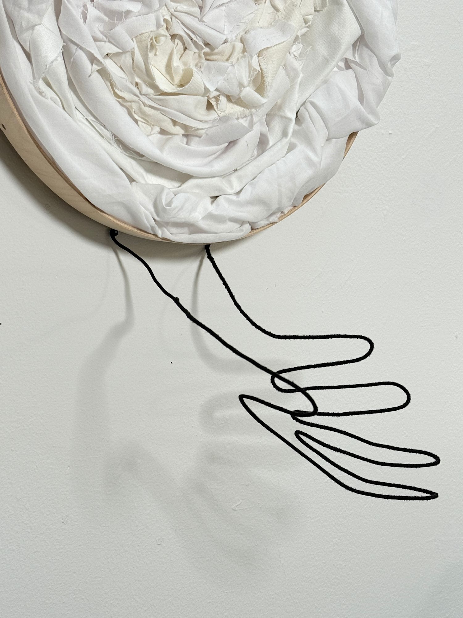 fabric scraps, wooden board, glue, armature wire, black cloth