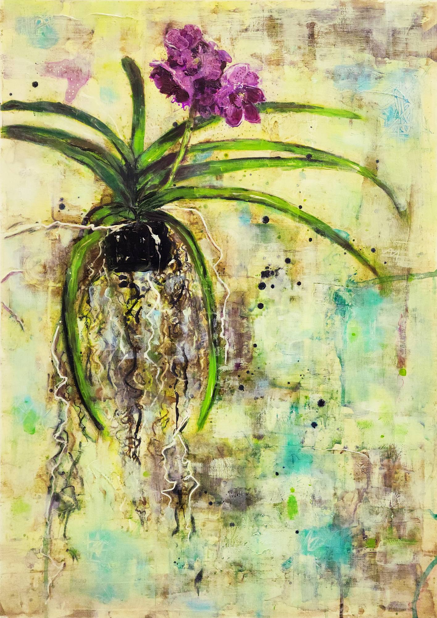 The Floating Garden Series: Purple Orchid 2 - Abstract Floral on Paper by Jodi Gaines