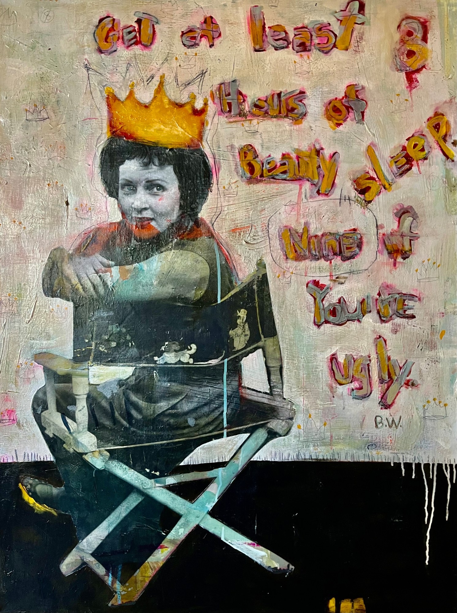 Written on the canvas: Get at least 8 hours of beauty sleep. Nine if you're ugly.