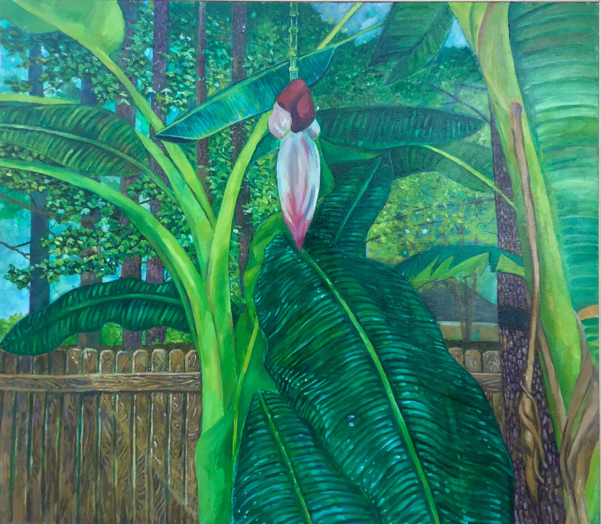 This is a banana tree in my backyard. I painted the tree in the summer of 2016.