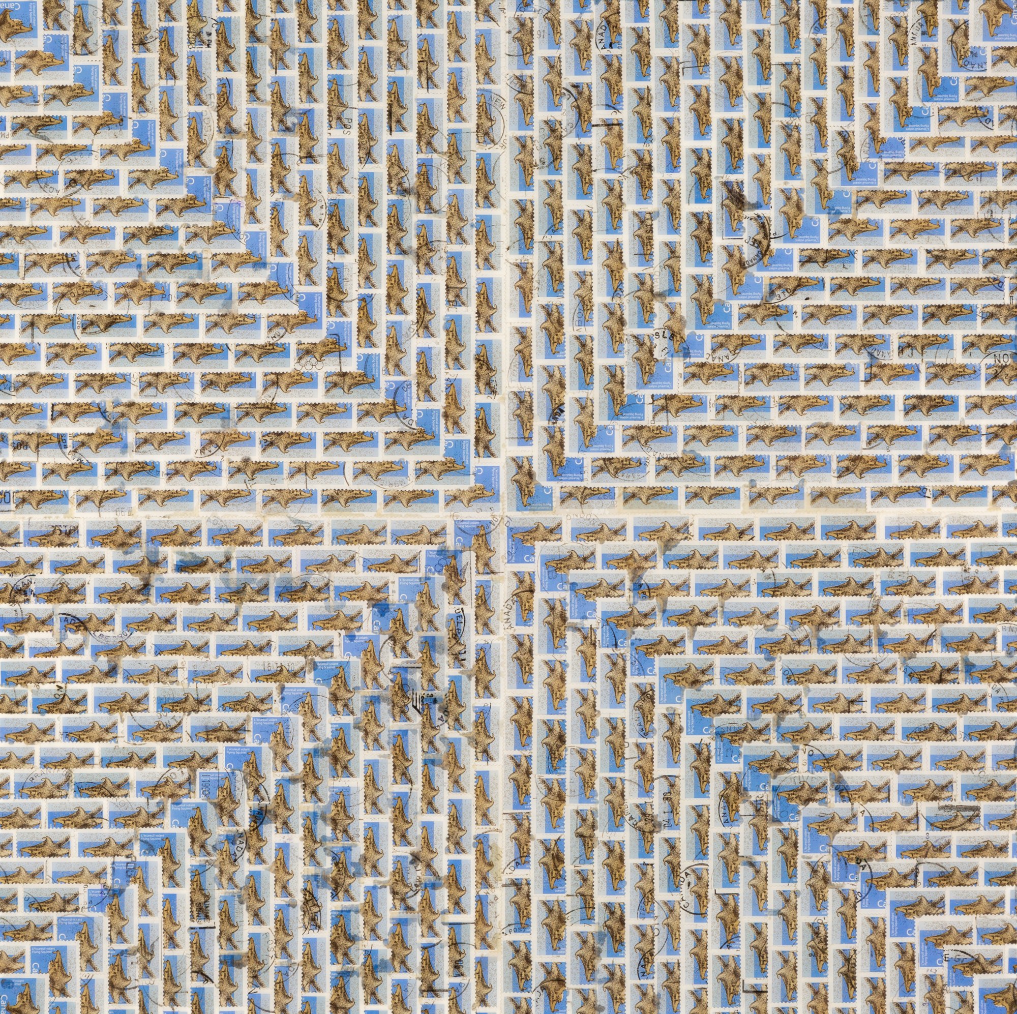 used Canadian postage stamps & resin on canvas