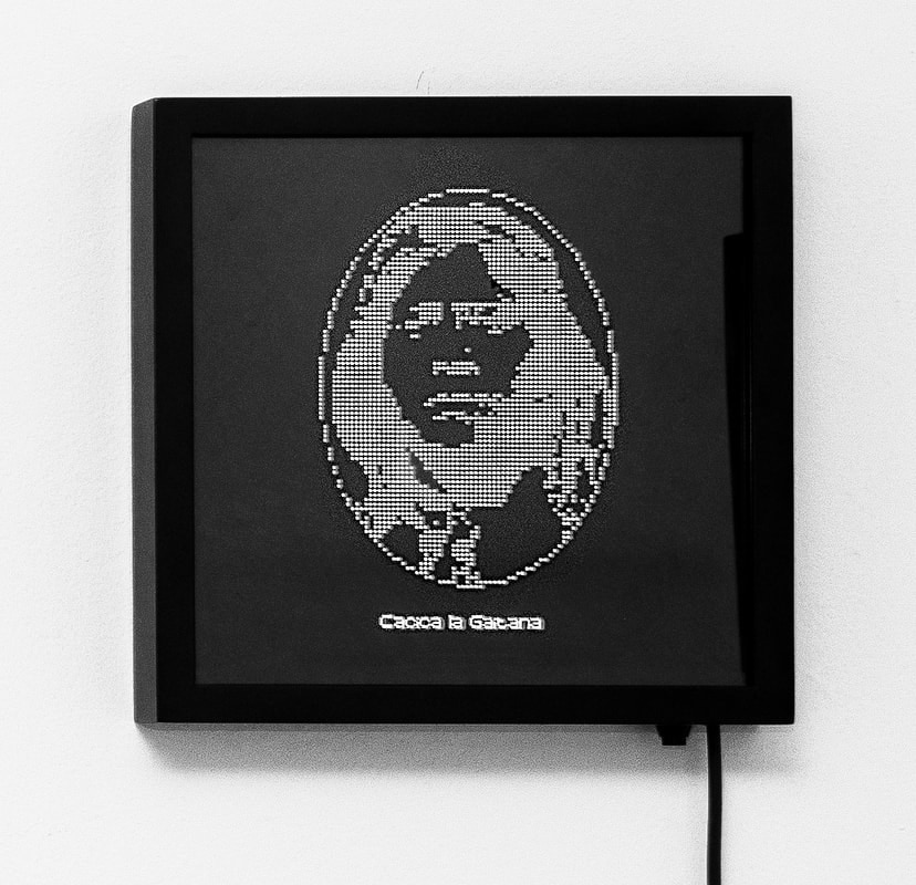 La Obra Ausencias - Cacica Gaitana (2021) hace parte de de la serie de Dibujos Nacionales. Esta propuesta desarrolla una aproximación a la Historia del arte colombiano y al trabajo de diferentes artistas colombianos, tales como Antonio Caro, quienes a través de décadas han revisado la realidad política del país. La idea detrás de estas obras es generar una imagen a partir de las perforaciones, señalando la perspectiva y el relativo lugar del punto de vista del observador.