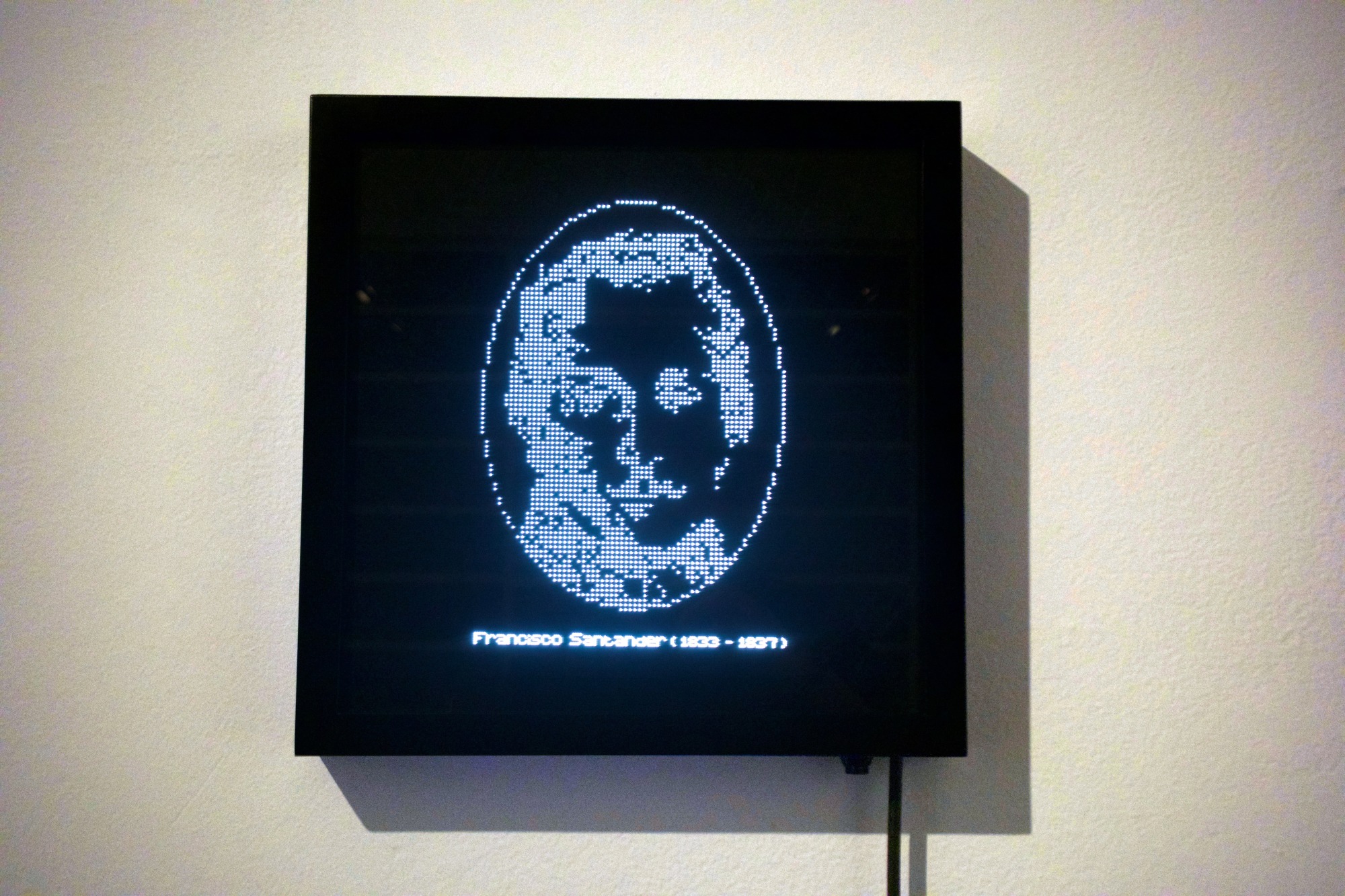Ausencias - Francisco de Paula Santander is a piece that is part of the series of National Drawings Series. This piece develops an approach to Colombia´s National History and its relationship with Art in order to review critically the political reality of the country. The appropriation of this Portrait suggests a new way of reading its values in the present. This allows the piece to establish an update for this particular context built through centuries, through textures and luminosities. The idea behind this piece is to generate an image using the perforations, pointing out the perspective and the relative place of the observer.