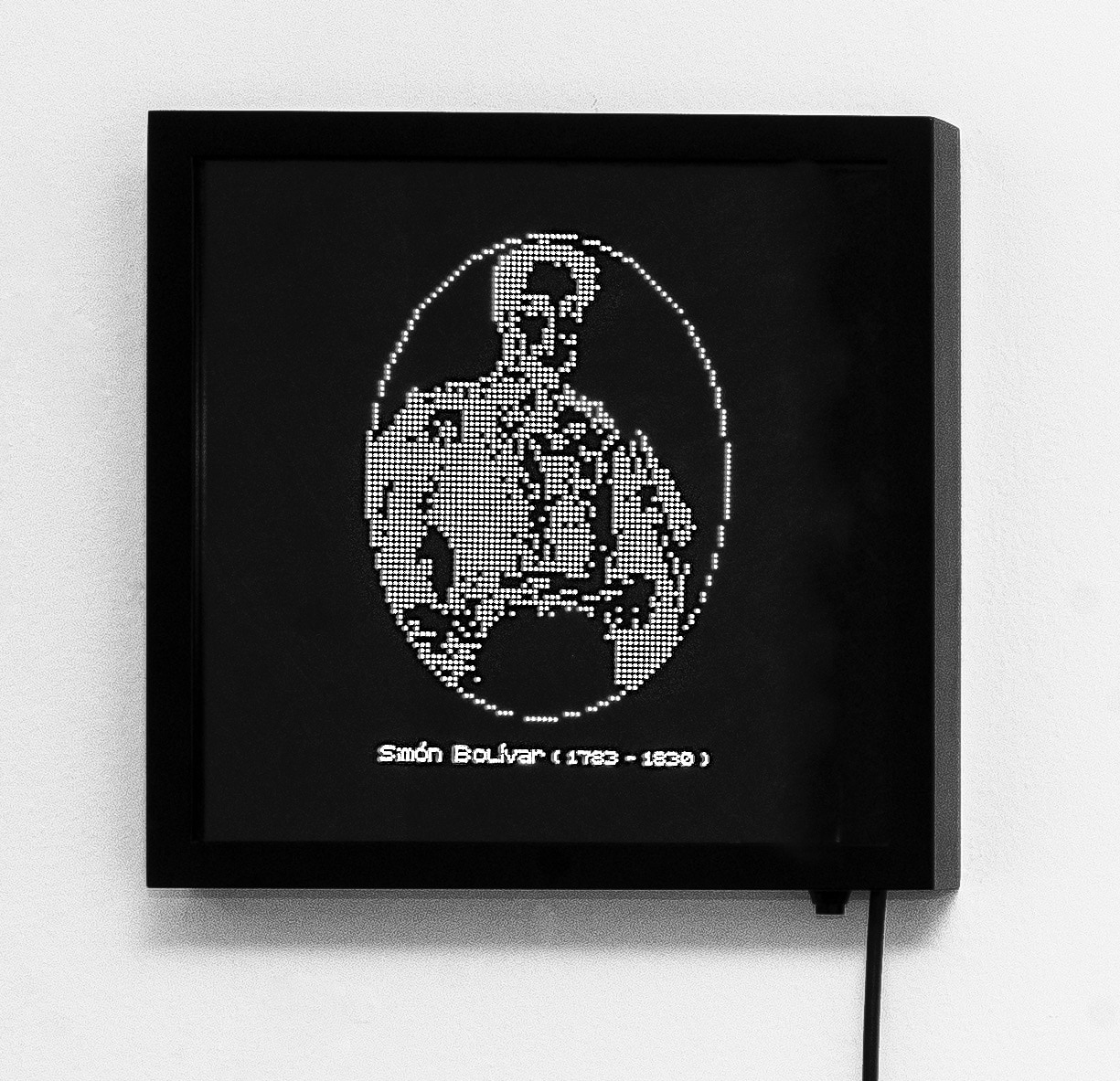 Ausencias - Simón Bolivar is a piece that is part of the series of National Drawings Series. This piece develops an approach to Colombia´s National History and its relationship with Art in order to review critically the political reality of the country. The appropriation of this Portrait suggests a new way of reading its values in the present. This allows the piece to establish an update for this particular context built through centuries, through textures and luminosities. The idea behind this piece is to generate an image using the perforations, pointing out the perspective and the relative place of the observer.