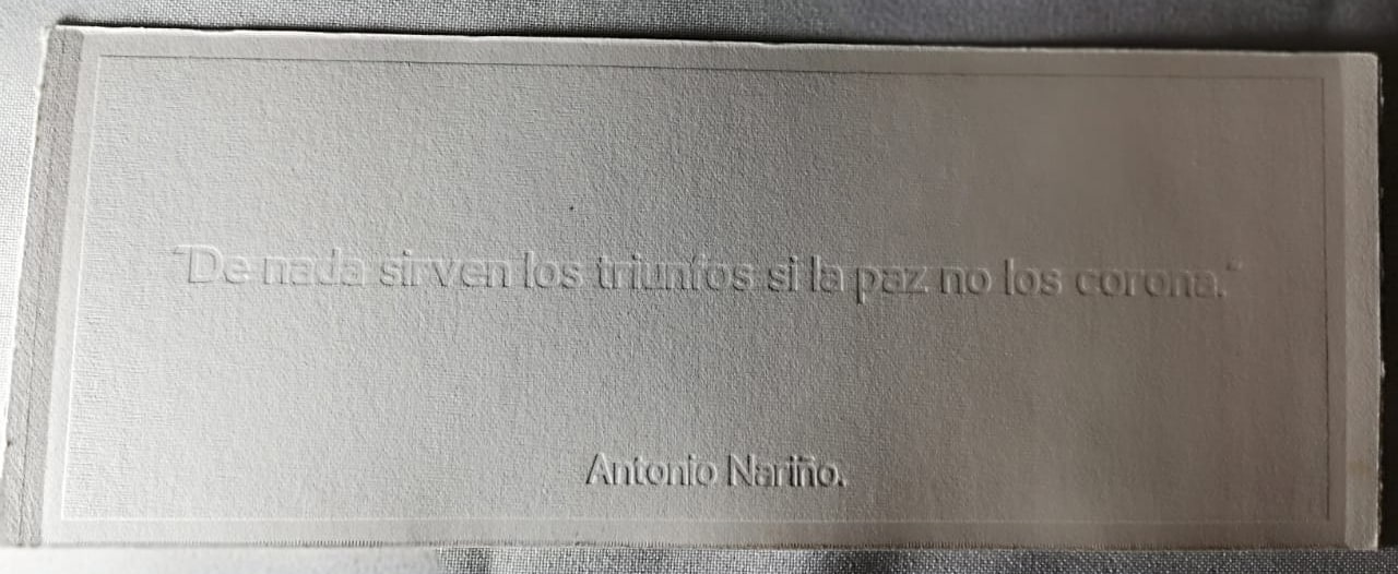 Thus, the artwork visualizes a comment on the construction of legal identity in the Colombian context, pointing out an existing relationship from the individual to the collective through the law. In this order of ideas and by means of artifacts of a textual nature, the 16 constitutions that the Colombian State has had are referenced in order to make a point towards elements such as the enunciation, the disappearance of the political subject and the overwriting process through time.