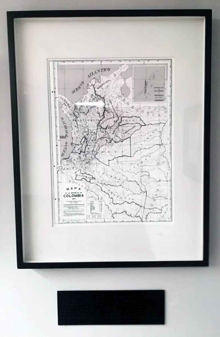Repúblicas - 1978 is a series of artworks that arose from an interest linked to Colombia´s historical construction, considering its institutions and the structure of the state apparatus and its representations. From there, the map of Colombia was selected, understanding its place as a sign focusing in the relationship between this immaterial entity and the map understood as an index. Thus, the aim is to go through Colombian History, pointing out the different moments where the country has lost territory, until it becomes what it is today. This series seeks to generate a metaphor by pointing out these moments opposing them to 6 braille plates that provide the information of each one of the maps and a download link to the original image. This operation seeks to emphasize the changing indexical relationship between the map and the idea of state, pointing out the responsibility of the visitor in front of how he confronts history by appropriating the available information about the publications on the plates with braille under the frames.