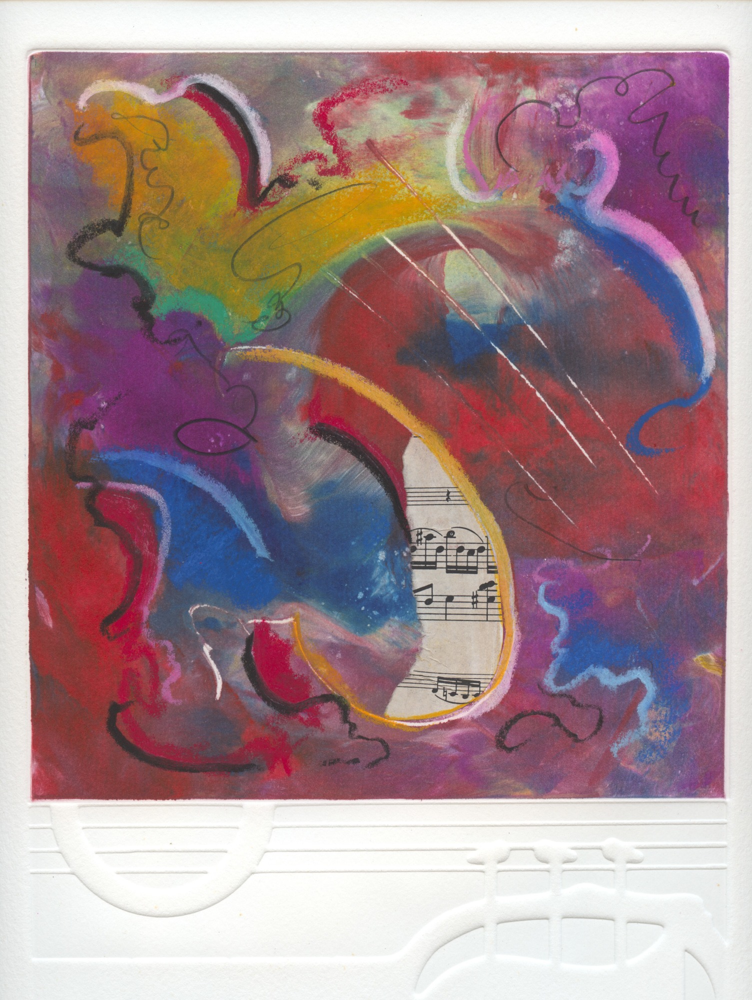 Lithograph with paper collage in colors, on wove paper, with full margins and embossed lower edge. Signed and numbered 1/1 in pencil in the margin.