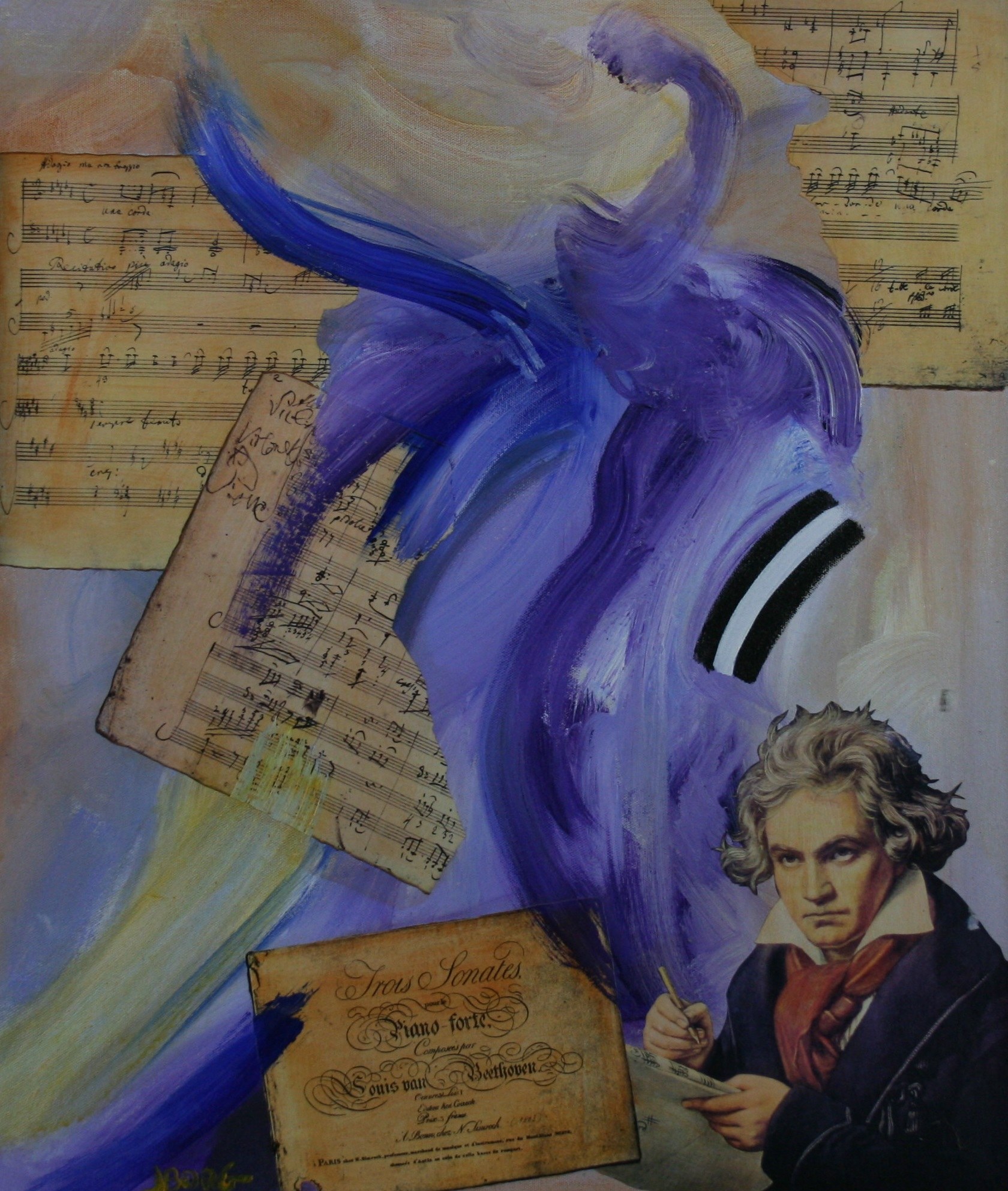 Acrylic with paper facsimile collage on canvas. Signed on the recto in the lower left.
