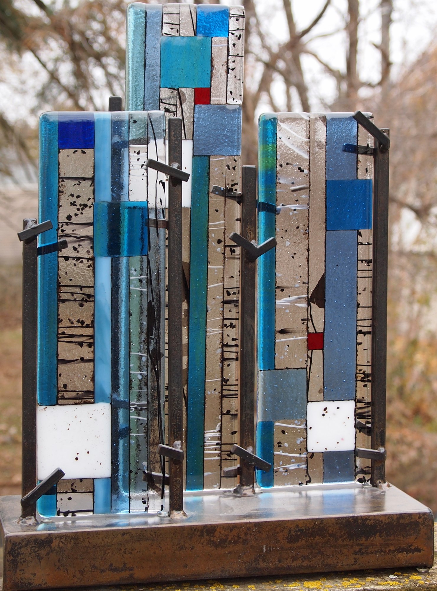 Working from my Saint Paul, MN studio, I create geometric and slightly abstract leaded stained glass with copper and fused kiln-worked elements.