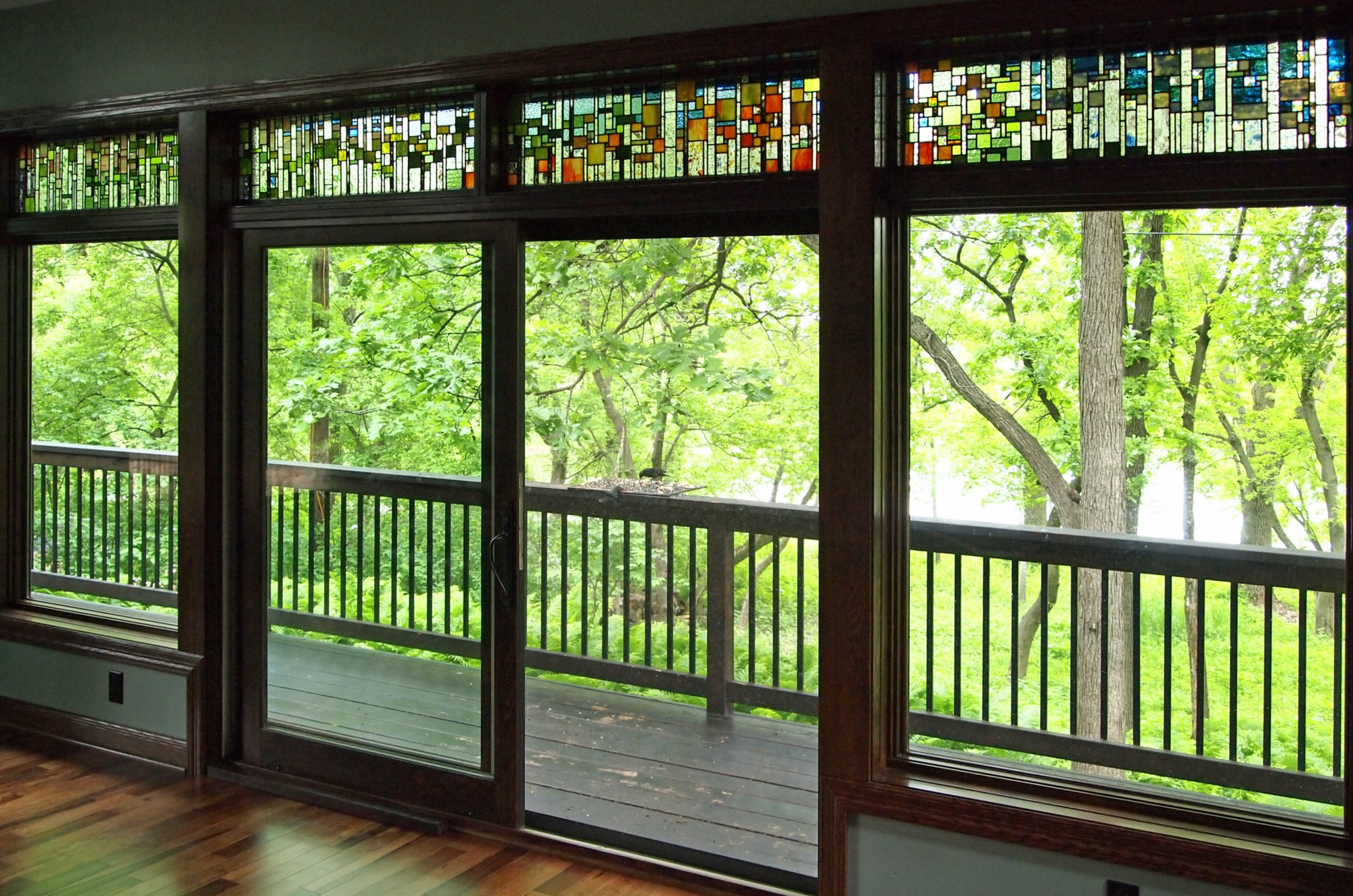 Art glass panels approximately 11-3/4”x 44-5/8” (2 panels) and 11-7/8”x44-1/4” (2 panels).