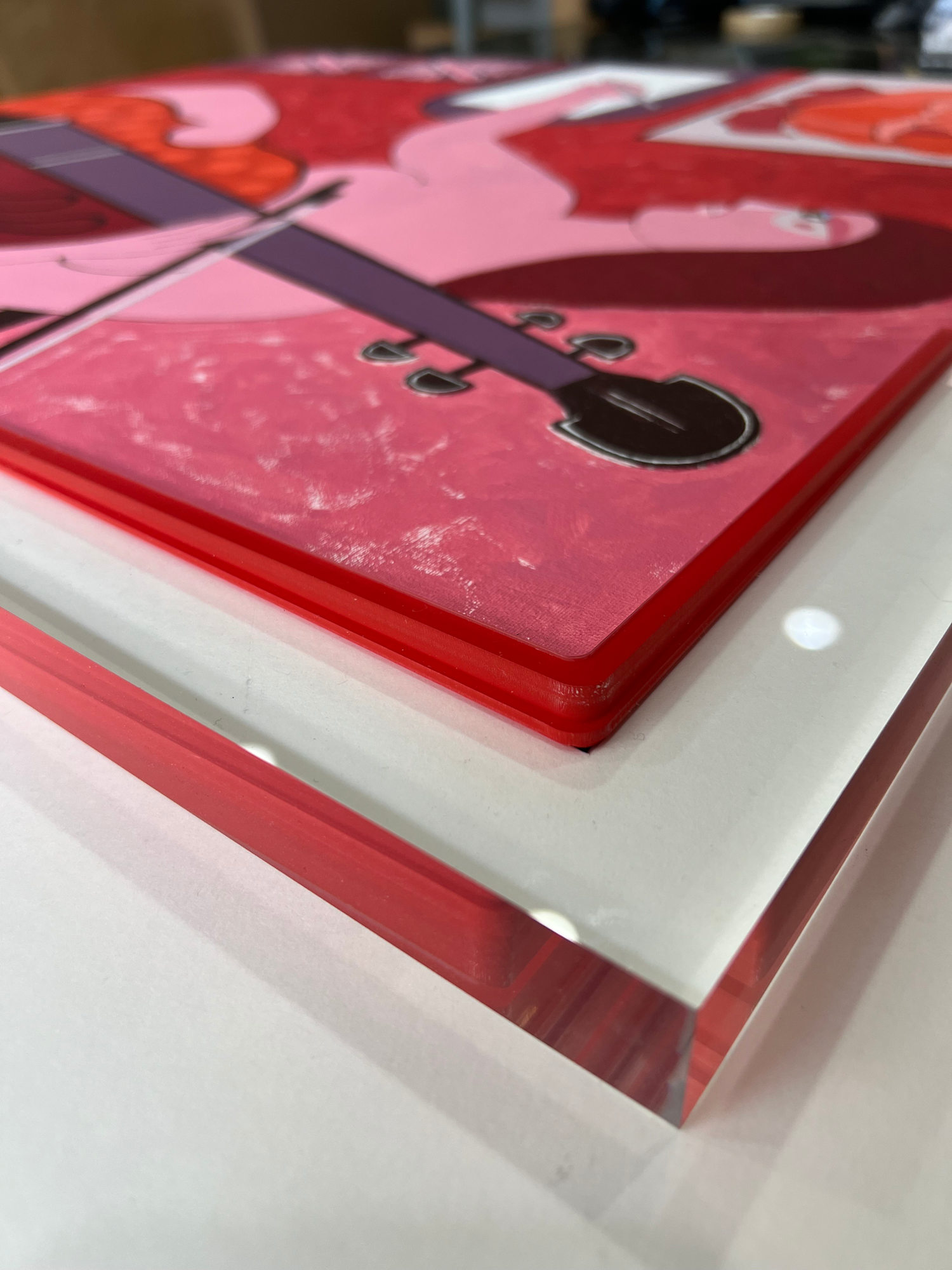 This work is accented in a stunning acrylic frame and certificate of authenticity.
