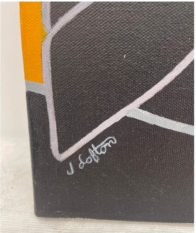 Resting II is a bold, beautiful and dramatic depiction of a reclining nude in the tradition of Matisse’s (Nude: Souvenir de Biskra), Manet’s (Olympia) Modgliani’s (Reclining Nude), and Goya’s (Nude Maja). Lofton shows his veritable knowledge of the history of this genre. Voluptuous and sensuous, this figure languidly reclines while staring directly at the viewer. The face resembles that of an African mask. Lofton’s idea of the mask connotes “masking” in African American culture, not as much a nod to cubism and Picasso. In this composition the “gaze” is returned in direct confrontation signifying the ritualistic power of the mask to project outward not inward. The delicate linear outline creates a sensuous feel to this figure that diagonally reclines in the composition. The nude half is painted in black while the other diagonal half is in bright blue and yellow hues. Yet, there is a balance of color and form that always informs Lofton’s paintings. The overall mood of the work seems to be a celebration of feminine mystique and power.