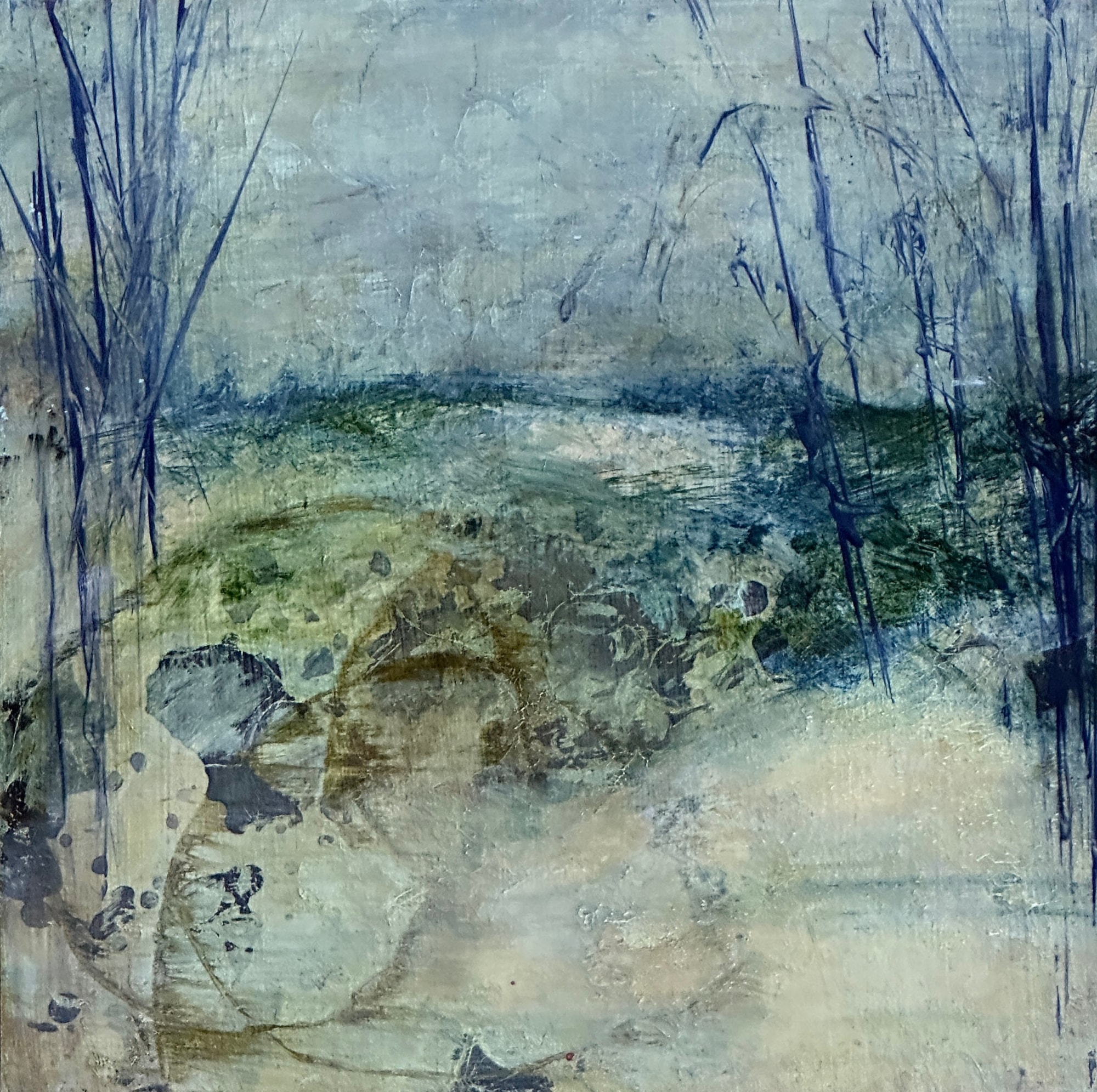 - December 15, Juanita Bellavance, Dry Land, From the 25 Days of Minis Portfolio, 2022, Acrylic on panel, 8 x 8 inches, Framed-9.5 x 9.5 inches