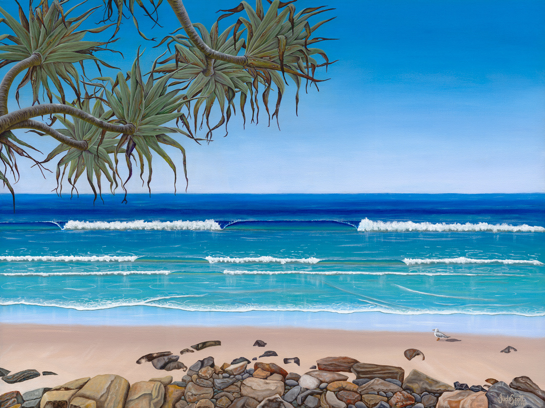 High quality reproduction Giclée Print from an original painting derived from a compilation of the Artist's reference photo's, taken along the beaches of Byron Bay, NSW Australia.