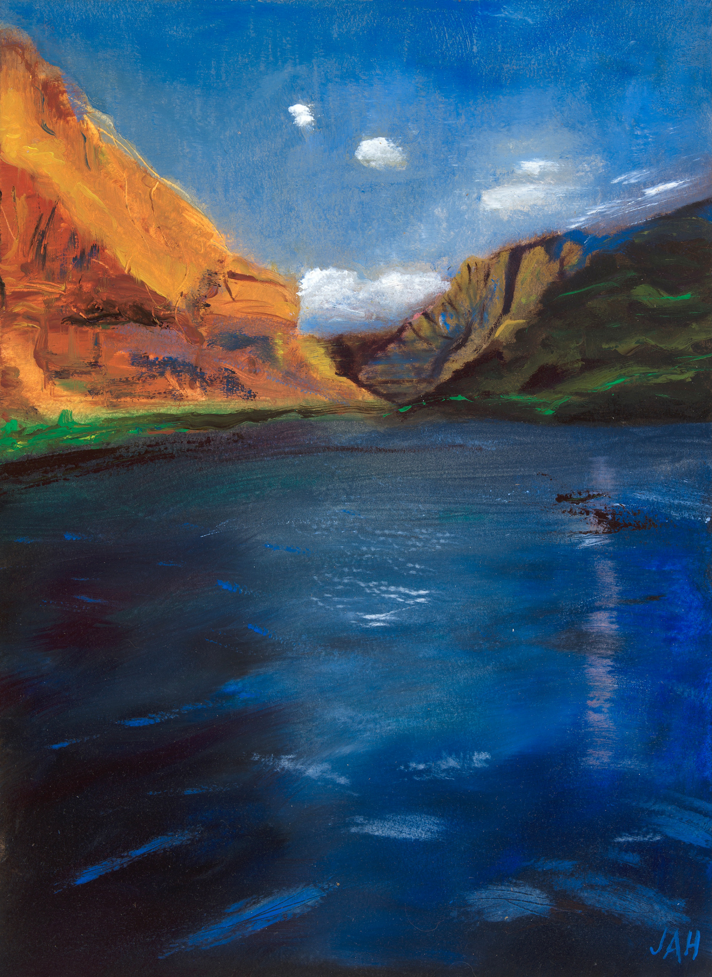In June 2020 I met some friends at Lees Ferry who were preparing for a river trip. I spent the night in the boat, and in the evening we motored up the river a ways to enjoy the setting sun. There were wild horses on the banks of the river and the scenery was spectacular.