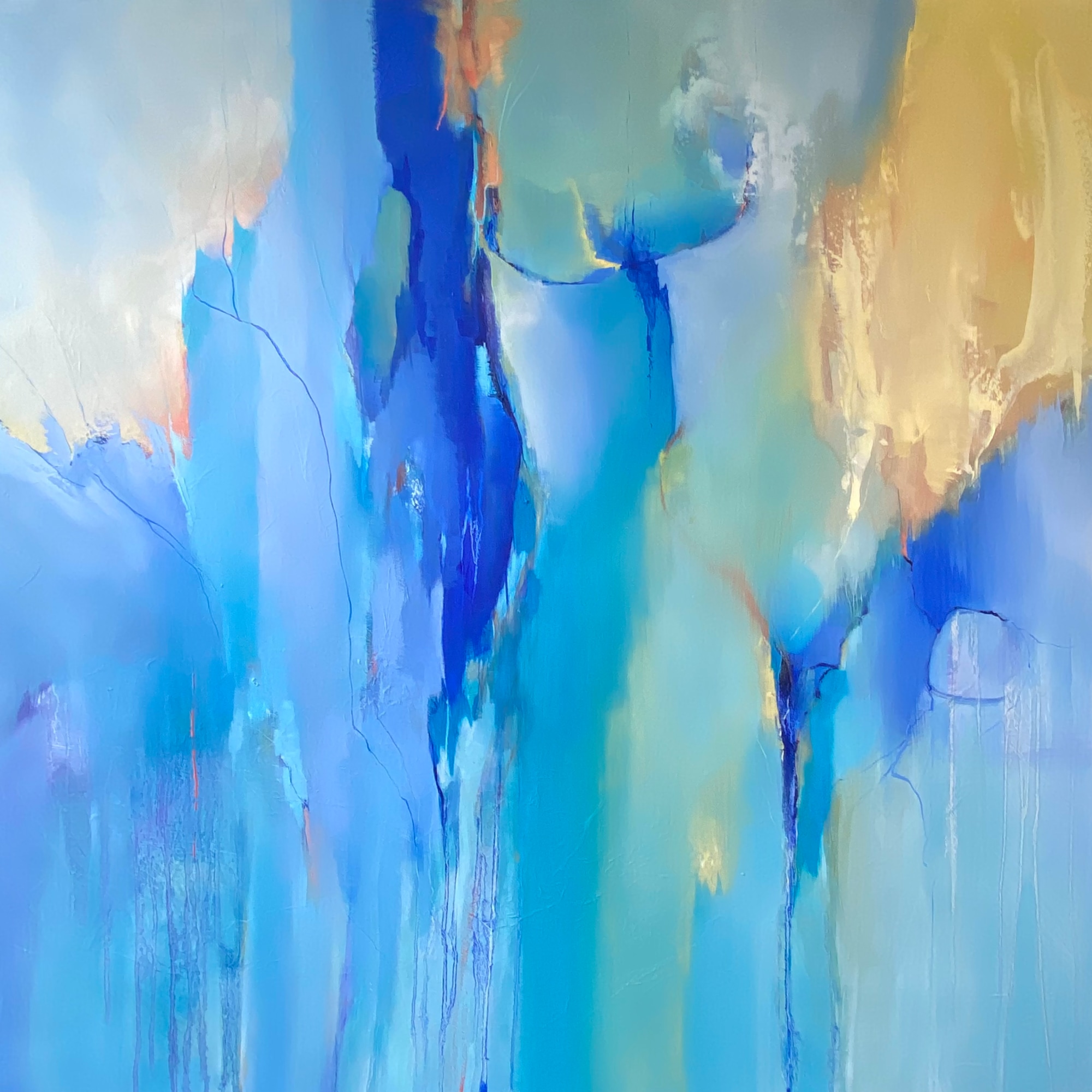 Have you ever gasped for breath? Maybe it was from shock or perhaps from overexertion. It's unsettling; your heart jolts as well. This painting, "Breathe Out So I Can Breathe You In" is a reminder to share your burdens as well as your joys, to breathe deeply and open your heart. It's a beautiful thing to be in sync with another person, to risk revealing your vulnerabilities in order to trust another, and to share their breath when you seem to lose yours. There is steadiness from the movement of inhale/exhale, and breathing together makes that stronger. There's a saying, "two people shorten the road." Two people also pave that road and help keep each other moving until the breath returns along with the light.