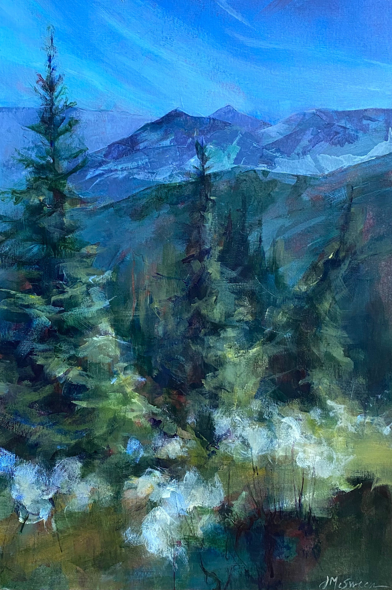Back in 2017, my husband and I tackled Glacier National Park’s Huckleberry Trail — nearly 12 miles, almost 3,000 feet of climbing, and more bear spray than I’d like to admit. The trail tested me at every turn… but the reward was unforgettable: endless fields of bear grass, bursts of Indian paintbrush, and a summit view that felt like forever. This painting is my way of bottling up that moment of awe and carrying it forward — a reminder of the joy, the risk, and the wonder wrapped into one perfect day.