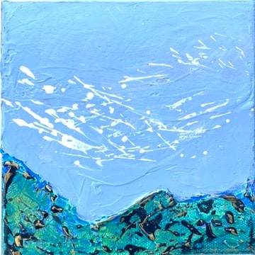 MessageLife on an Island inspires the pieces in this mini-series of 8 paintings. Clouds drift easily with the breeze and I am carried away by their gentle movement on a perfect summer day.