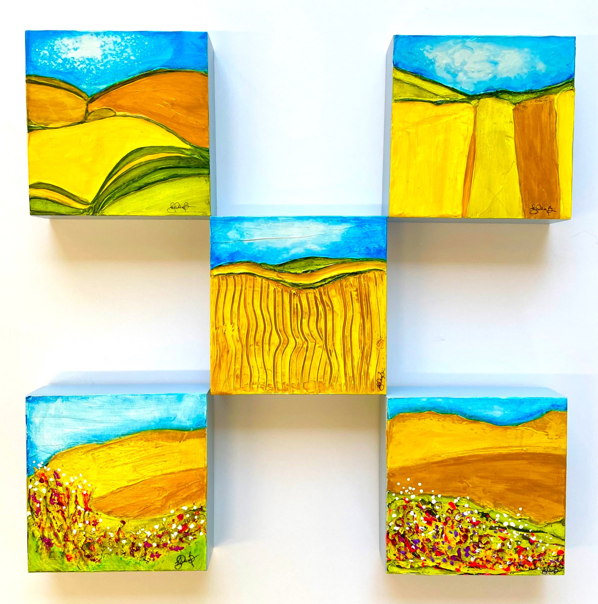 MessageThe 'Field Day' series of five small paintings reflect my deep-rooted connection to the picturesque farm fields on Prince Edward Island, which become so saturated with colour and lacily edged with wildflowers at midsummer.