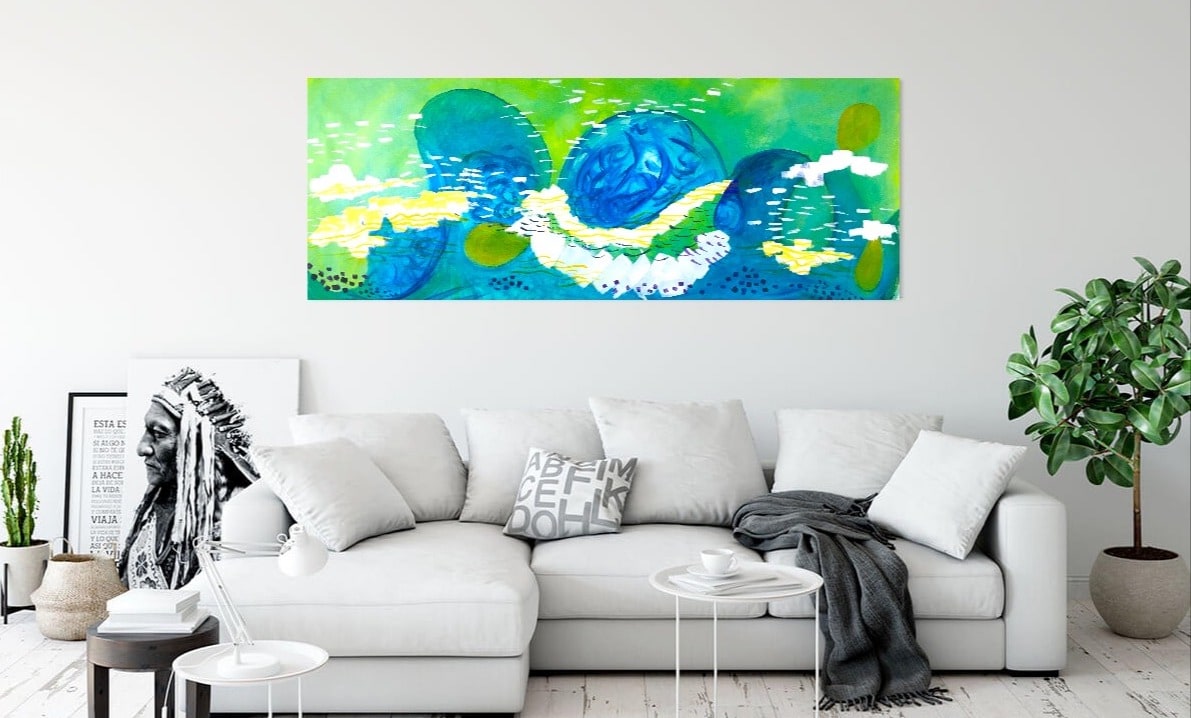 MessageMy place in PEI has a wide-reaching view of the Hillsborough River—a designated heritage river—which provides ongoing inspiration. It is a picturesque, saltwater tidal river. To swim or kayak requires planning around its 7-9 foot tides but the feeling that comes with ‘floating with the river tide’ is a buoyantly blissful reward. This painting captures and expresses the essence of that feeling/sense of movement.