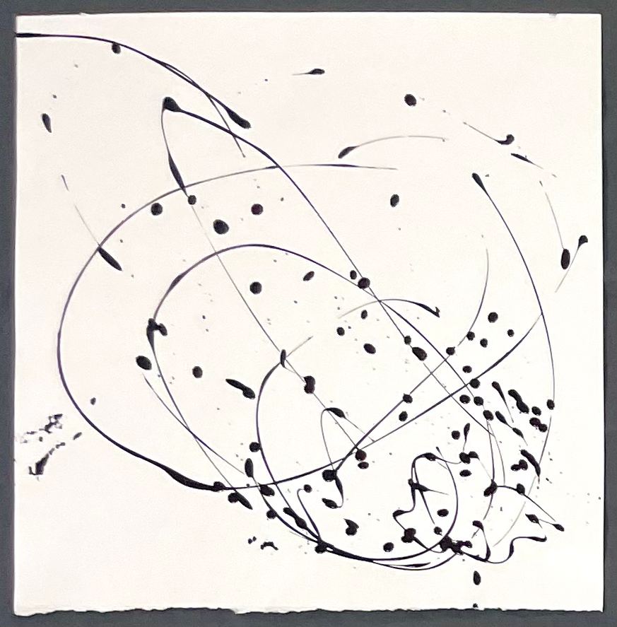 MessageThis improvisational painting was quick-sketched in response to music performed in rehearsal by Atlantic String Machine (ASM). It is one of a series of nine painted sketches that express the energy, emotion and movement sparked by 'Prokofiev's Dreams of a Minor Swing' composed by ASM violinist, Sean Kemp.