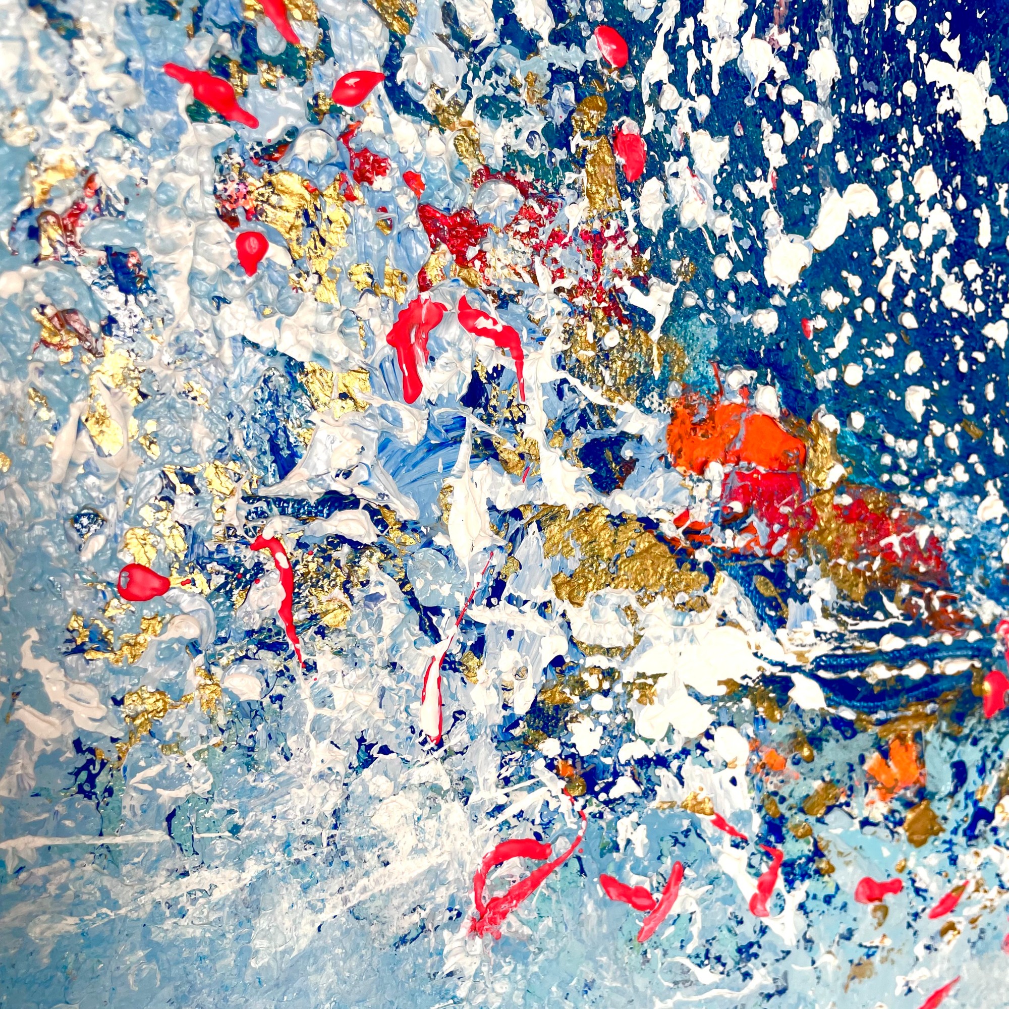 MessageI invite viewers to interpret the universal theme of 'surfacing' in this piece. The gold metallic paint in this piece gives a shimmer that shifts depending on the light.