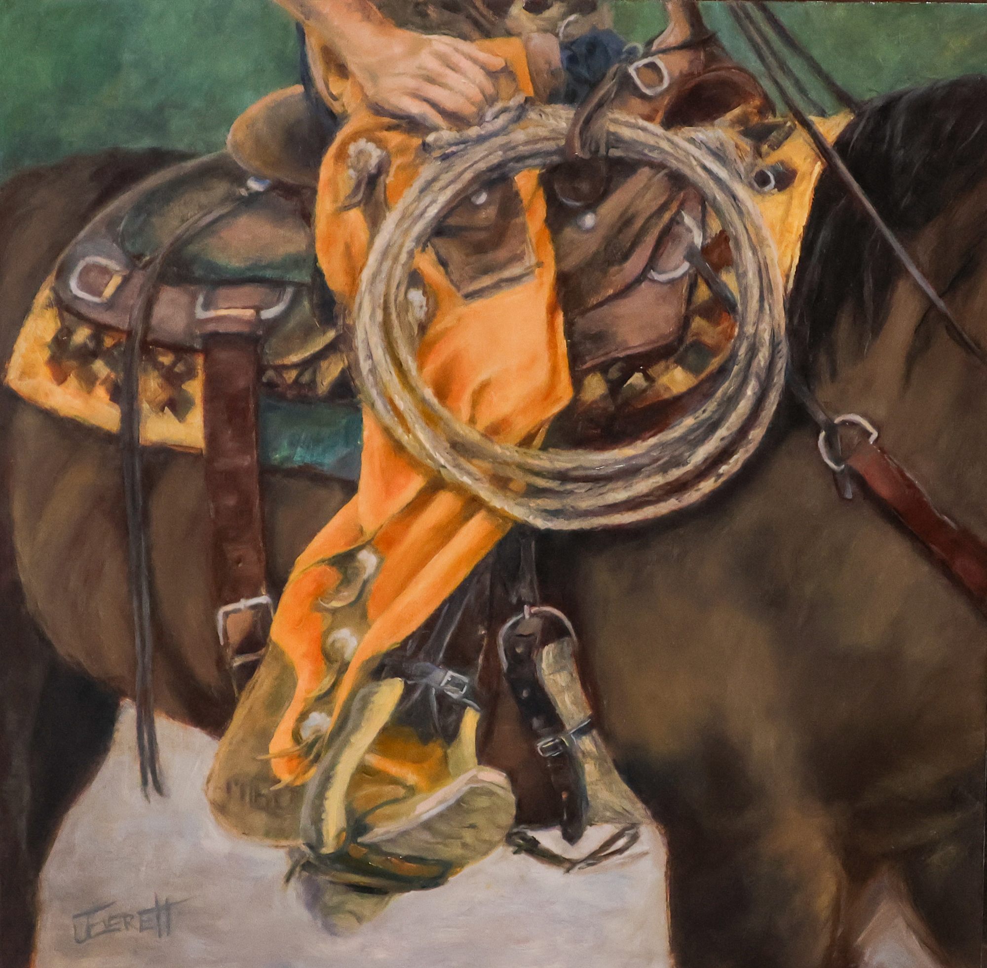 I was intrigued by the complexity of all the tack and textures in this image of the working cowboy; the blanket, saddle, leather, and trim all requiring different treatments. And of course, the horse!