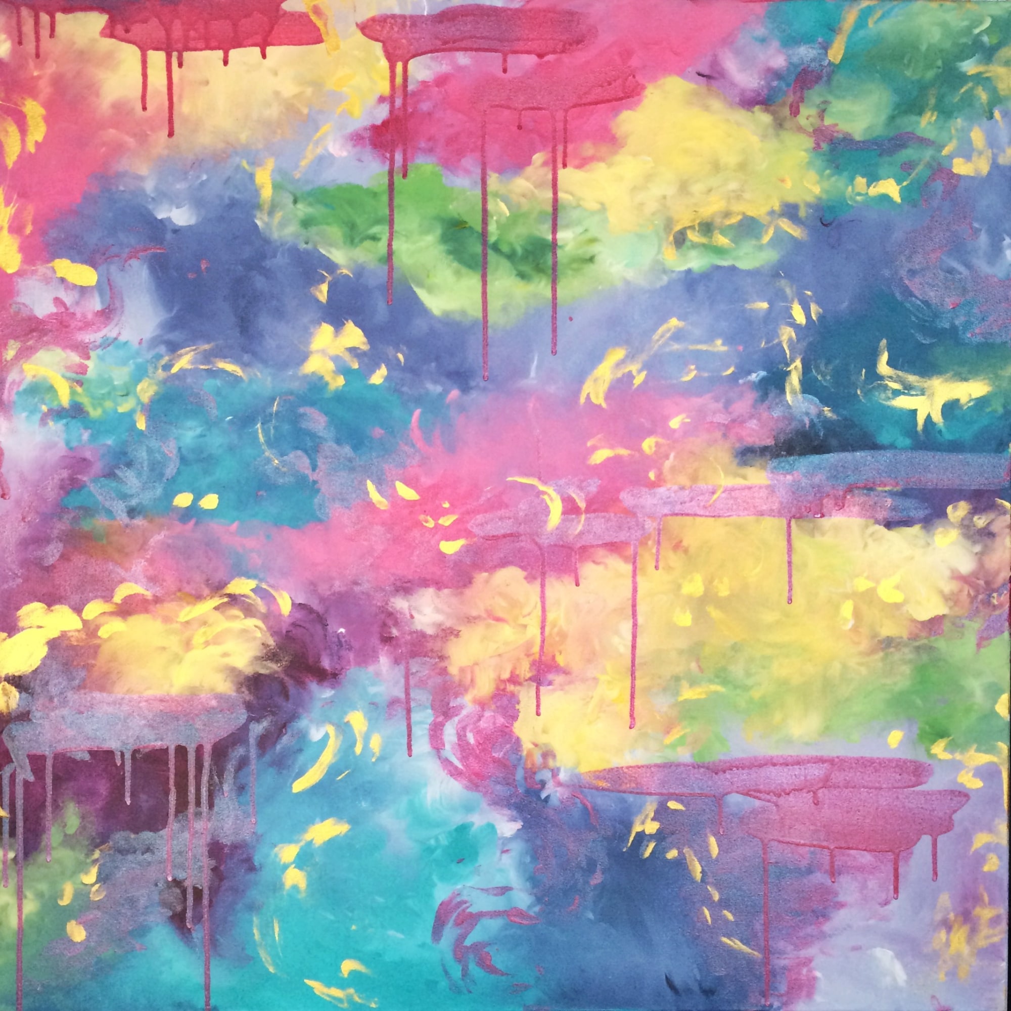 This is the first and only painting where I used glitter and shimmery pigments mixed in with the colors. You can see it in the bluish sheen in some of the drips, especially on the bottom left :blue_heart: