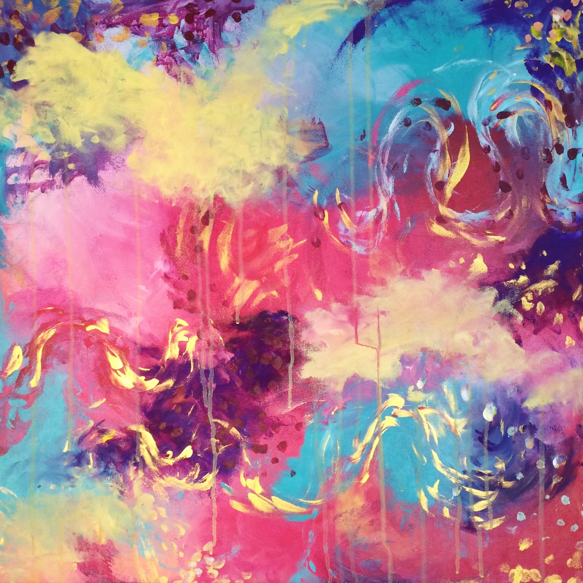 Normally I listen to music while painting, but with this, I talked to my brother on the phone (completely new experience, I will never do that again), not only did my phone battery die halfway through, I also knocked over my magenta acrylic ink, which was expensive and turned my floor pink. So I had half the painting done and then being pissed after mopping the floor, I tried to finish it and thought it was horrible. All around lots of bad feelings.