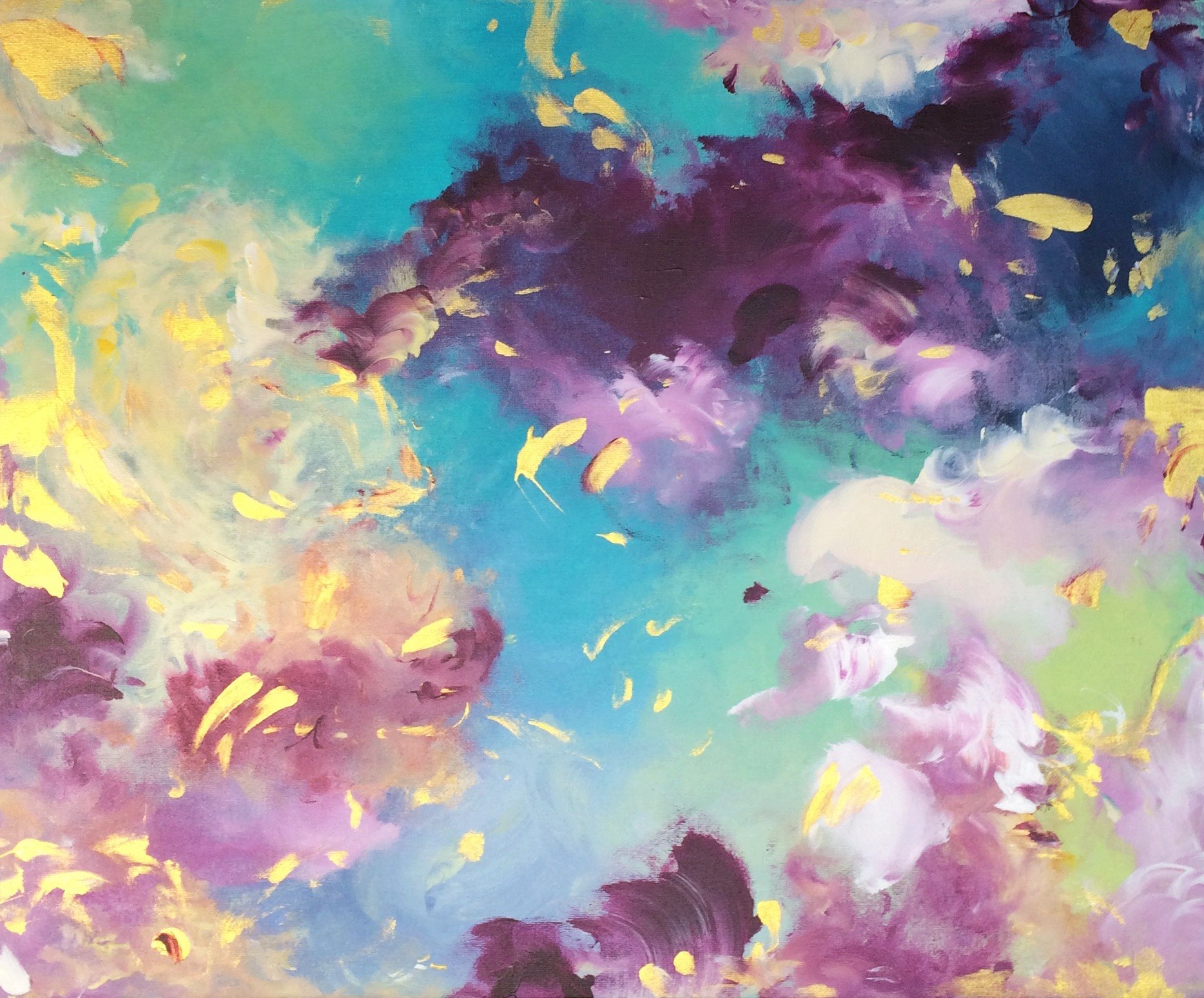 This is one of my favorite paintings to date. It invokes in me a calming sensation, like a breeze from the ocean or petals tumbling through the wind, finally settling in the water.