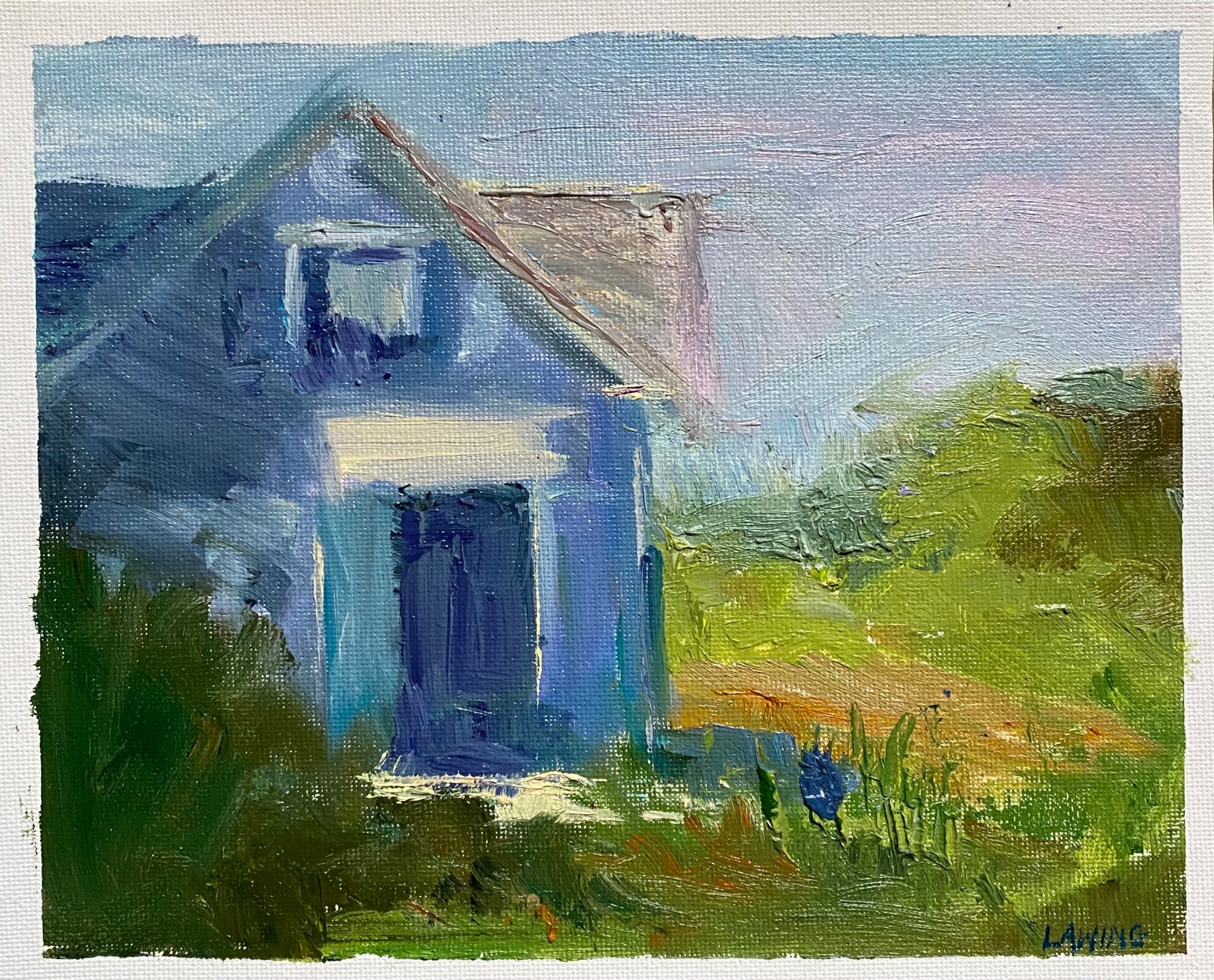 Island cottage on Block Island, Rhode Island. Oil on canvas paper.