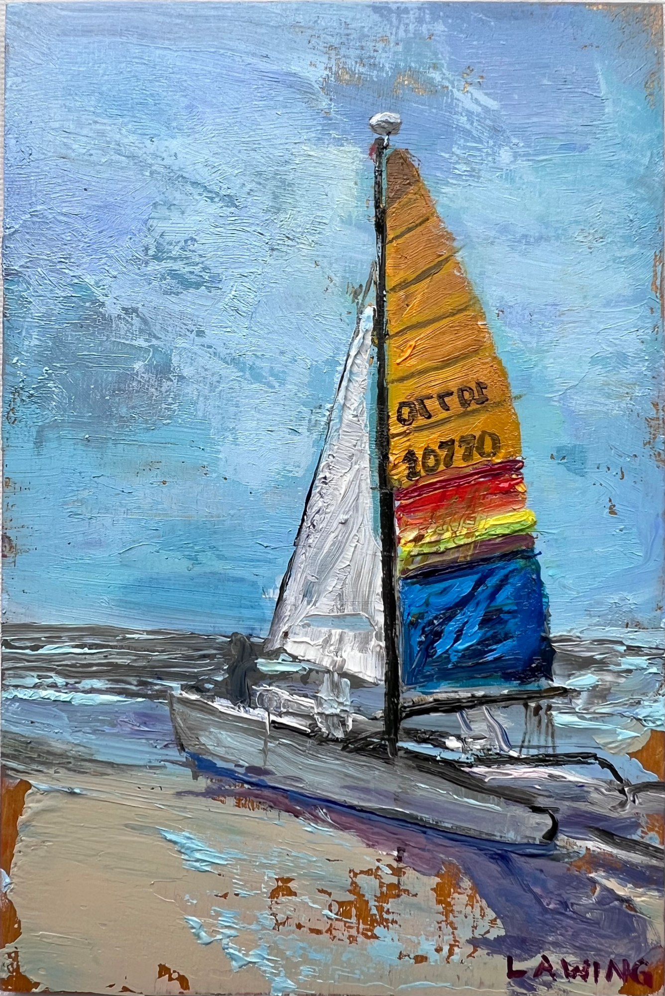 Waiting on Wind by Julia Chandler Lawing. Oil on wood panel, 6x4 inches, with mini wooden easel (choice of black or natural).