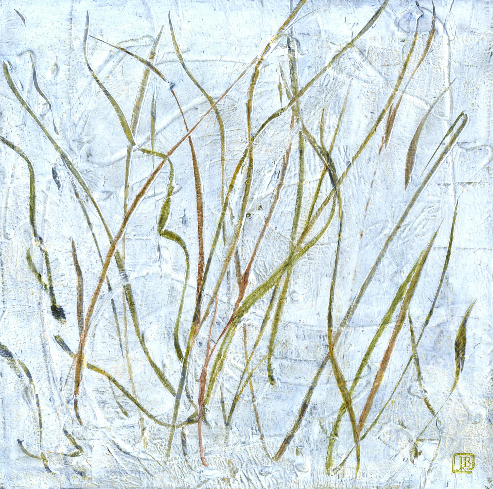 Gesso, collage (hand-printed tissue paper), acrylic, on cradled wood panel