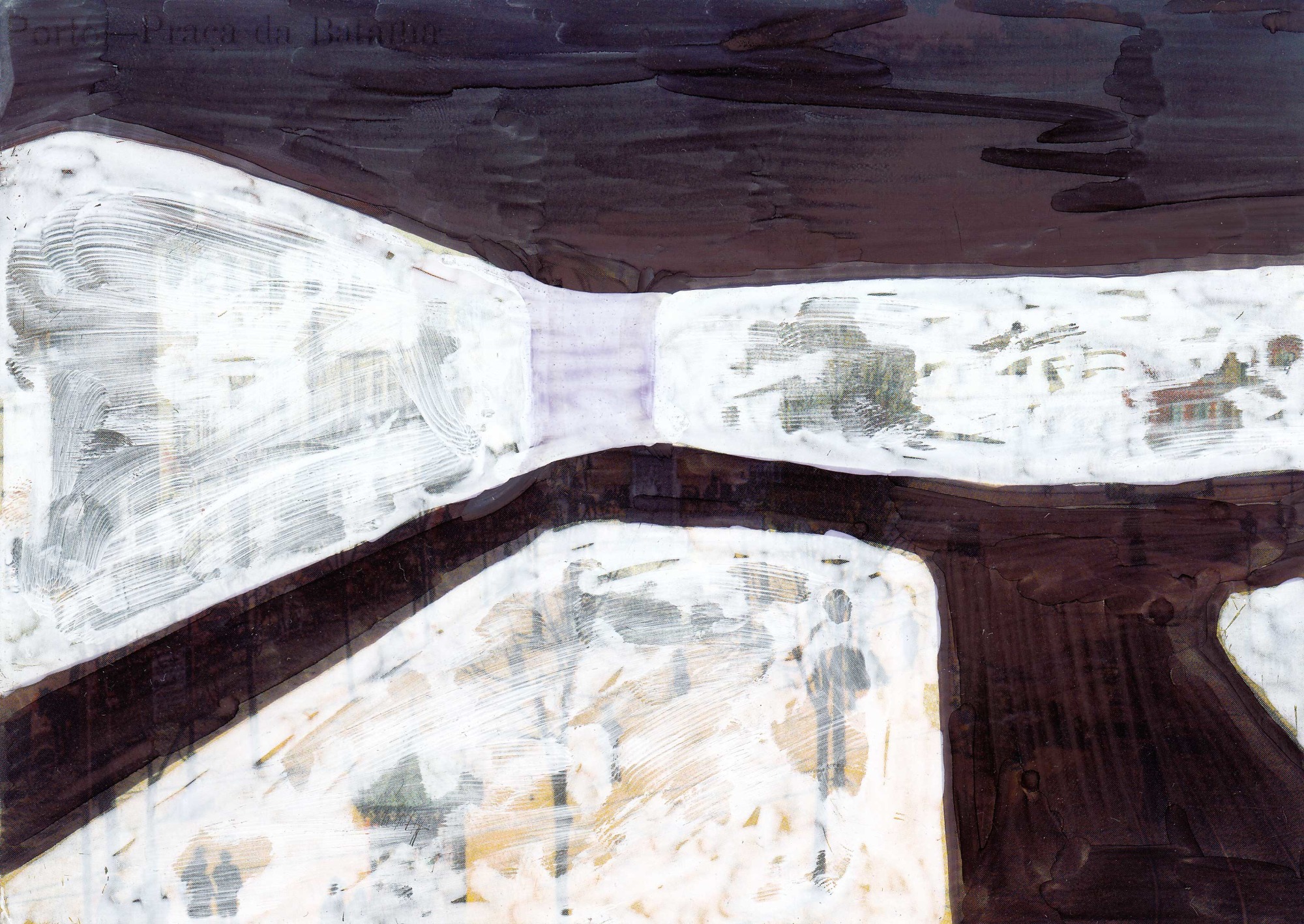calligraphic ink, indian ink and acrylic plaster on postcard